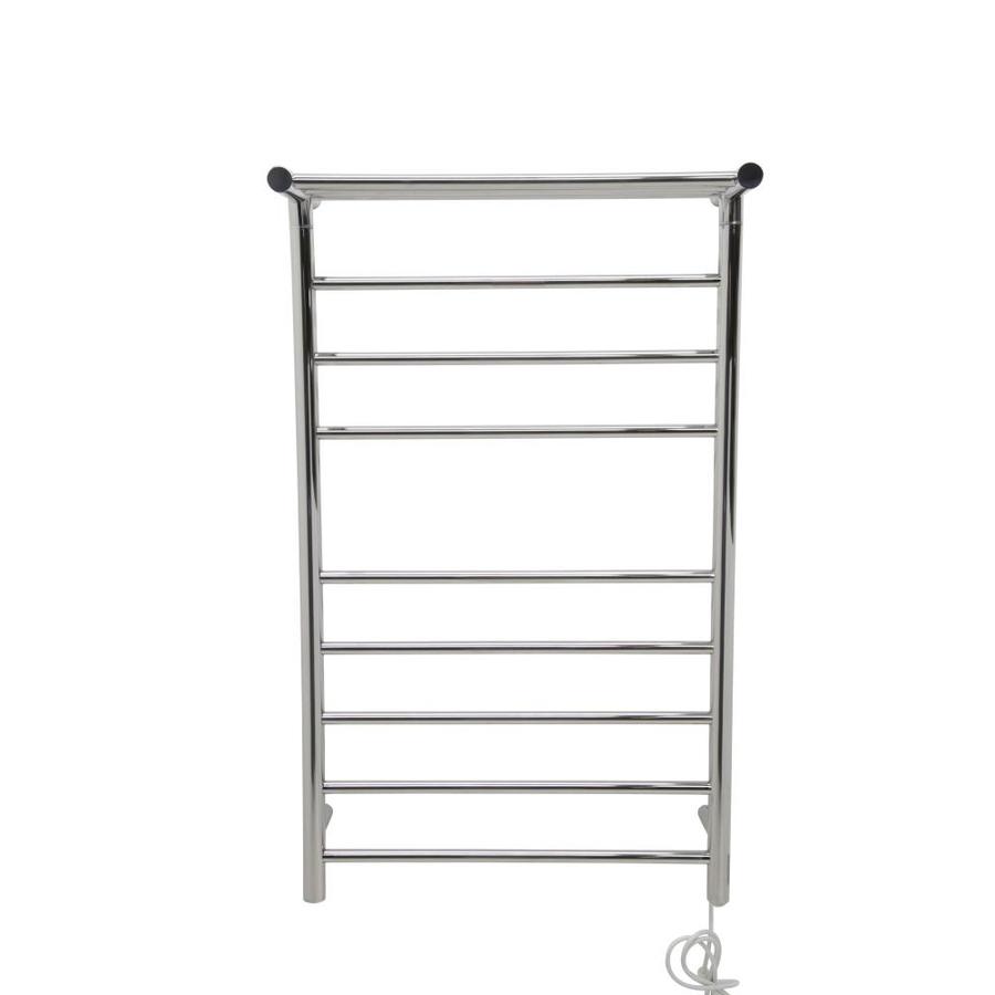 Warm and dry towels fast with ANZZI’s wall-mounted, plug-in towel warmer. The polished chrome 8-bar rack with a top shelf delivers efficient 93W heating and reaches up to 120°F, ideal for bathrooms of any size.