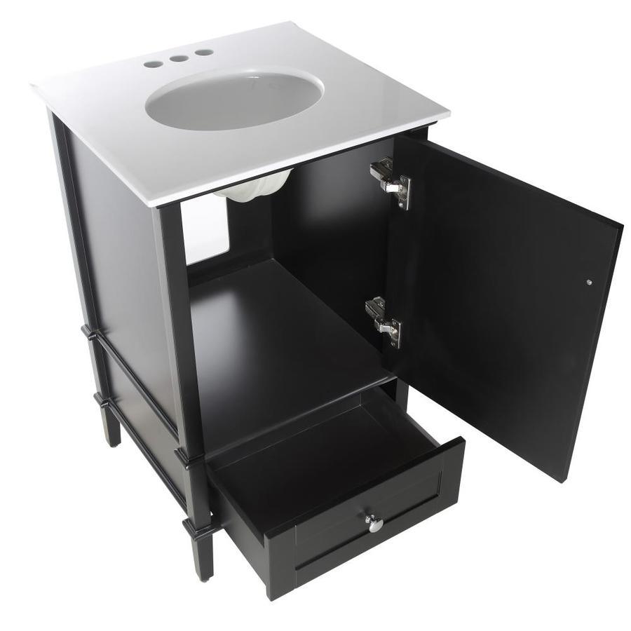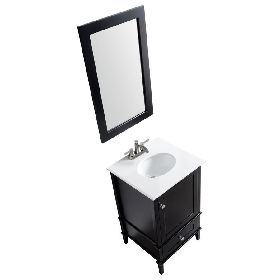 ANZZI Alexander Series 21-in Black Single Sink Bathroom Vanity with White Solid Surface Top (Mirror Included)
