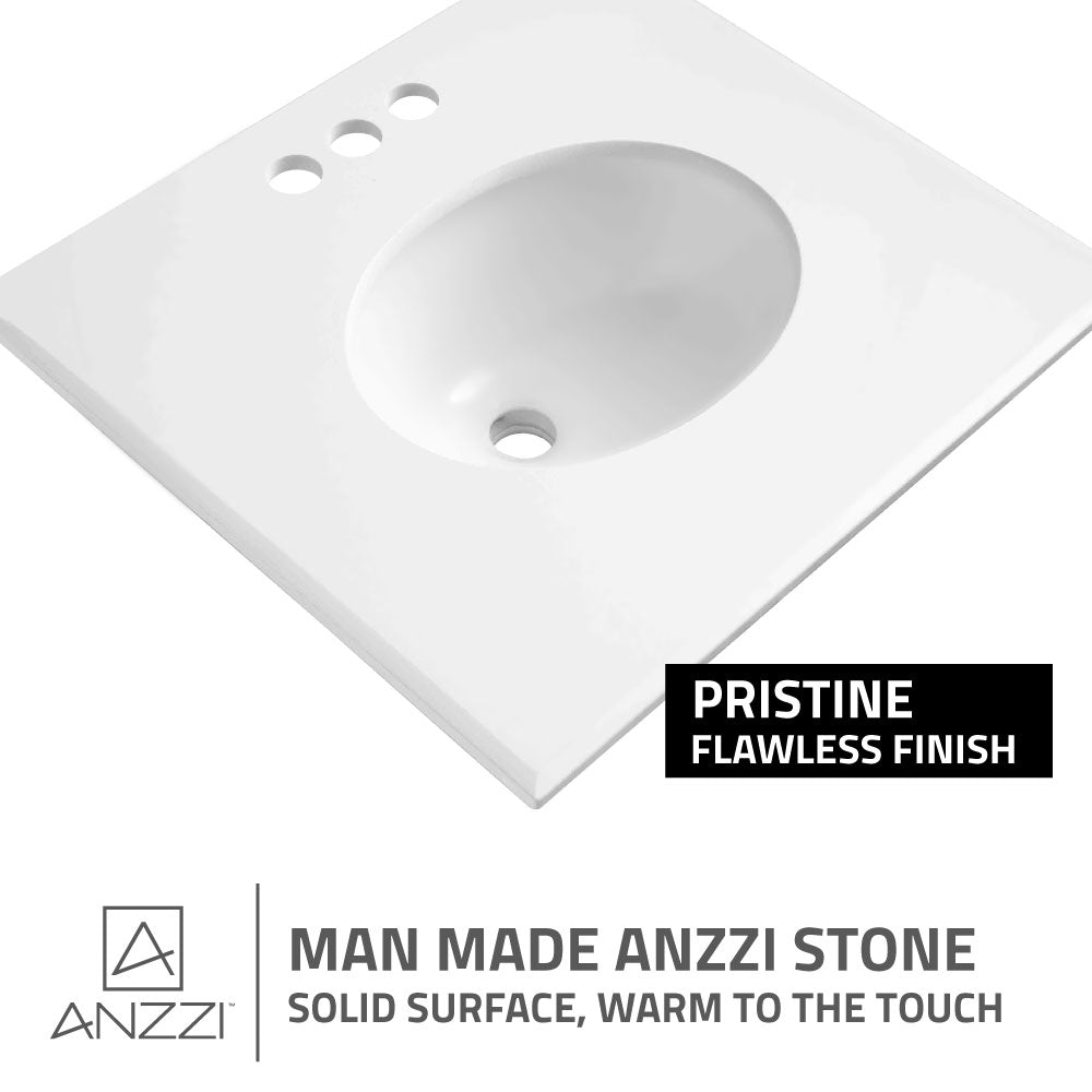 • Solid Surface Top: White man-made ANZZI stone countertop and integrated sink are easy to clean and warm to the touch