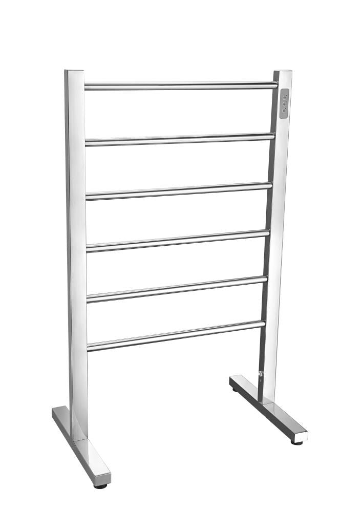 ANZZI Polished Chrome Plug-In Freestanding Towel Warmer, 21.85 x 13.98 x 35.24 in, Kiln Series 6-Bar