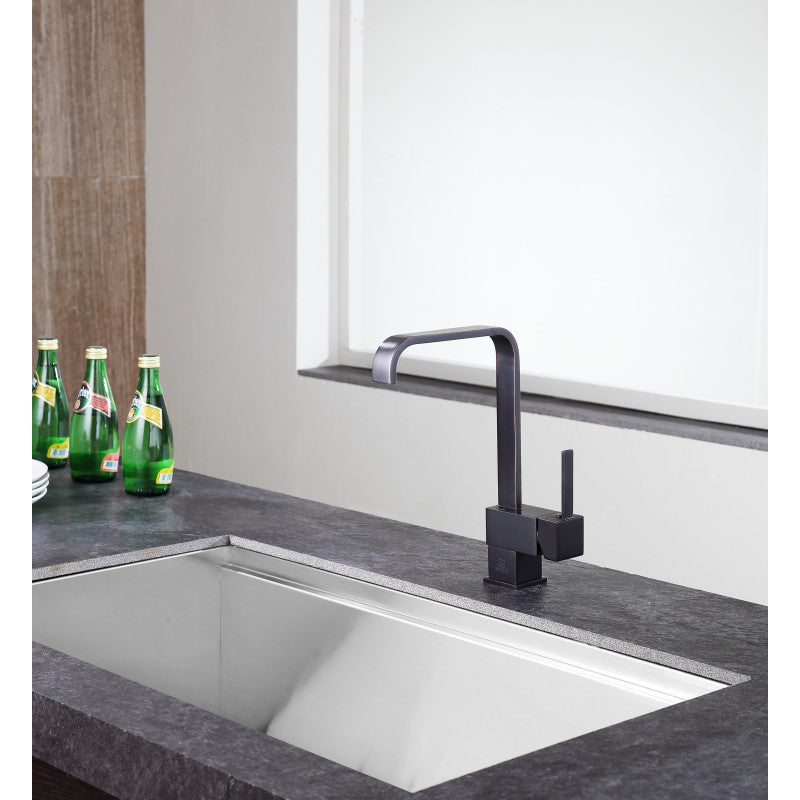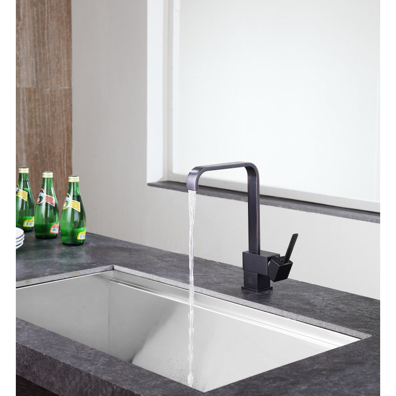 The ANZZI Sabre kitchen faucet pairs a striking squared high-arc spout with a durable oil rubbed bronze finish. Built from RHINO ALLOY certified lead‑free solid brass with a marine‑grade ceramic disk cartridge, it delivers smooth single‑handle control and long-lasting reliability.