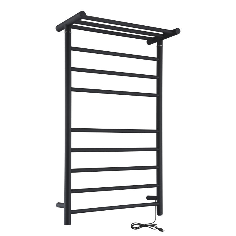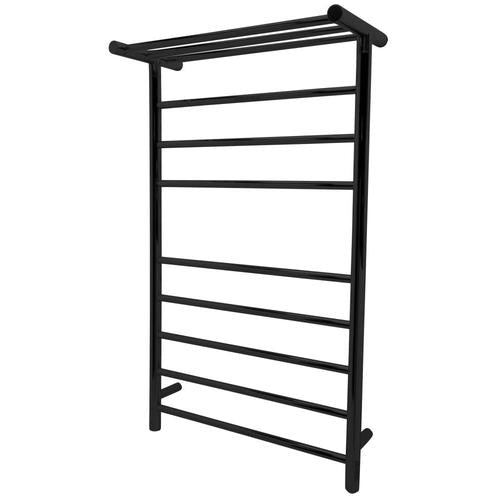 ANZZI Eve 8-Bar Matte Black Plug-In Wall Mounted Electric Towel Warmer with Top Shelf, 23.62 x 9.53 x 39.09 in