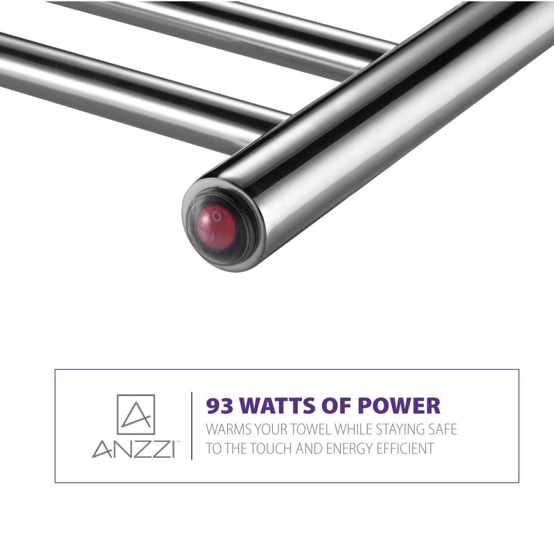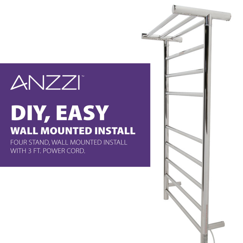 Warm towels and robes quickly with ANZZI’s Eve 8-bar electric towel warmer. Crafted from RHINO ALLOY certified stainless steel with a matte black finish, it mounts to the wall and plugs into a standard outlet for easy installation.
