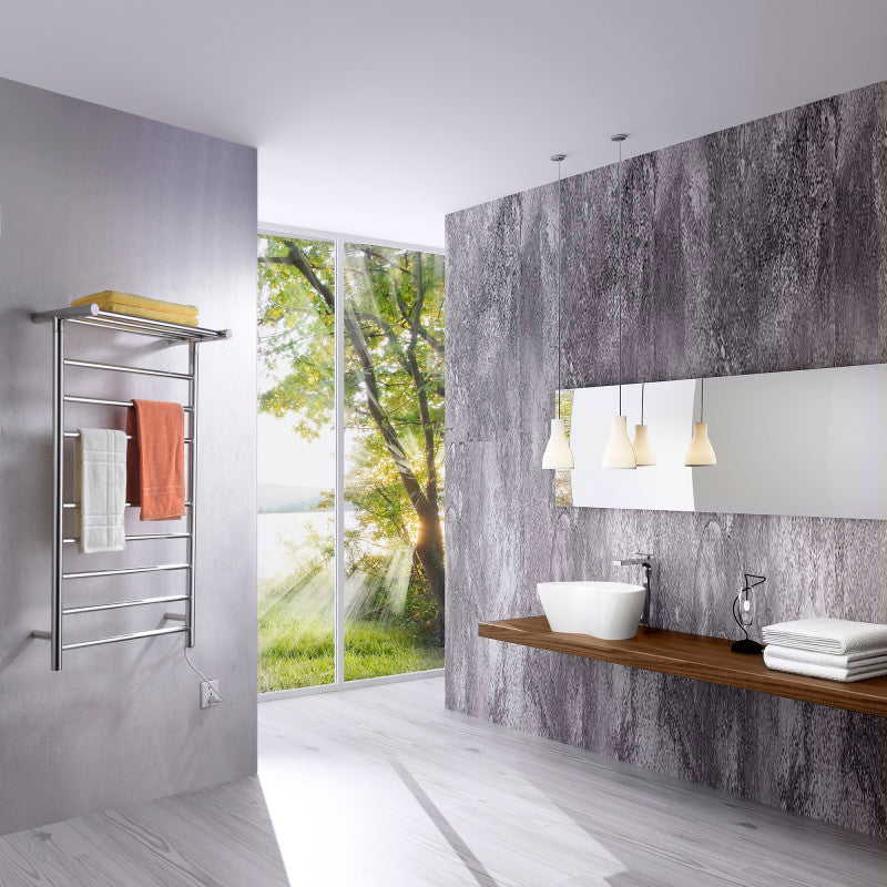 This towel warmer introduces a whispered luxury to the bath, draping your daily routine in warmth and modern poise. The matte black finish reads architectural and refined, while the elevated top shelf creates a sculptural silhouette with purpose. Style it against textured stone or pale plaster and layer plush white towels for a crisp contrast. It’s a simple indulgence that makes everyday living feel impeccably tailored.