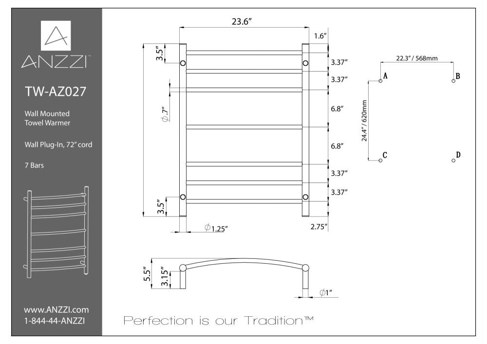 ANZZI Gown 7-Bar Matte Black Plug-In Wall-Mount Towel Warmer, 23.6 in W x 31.5 in H