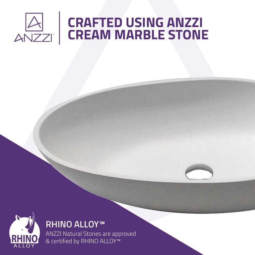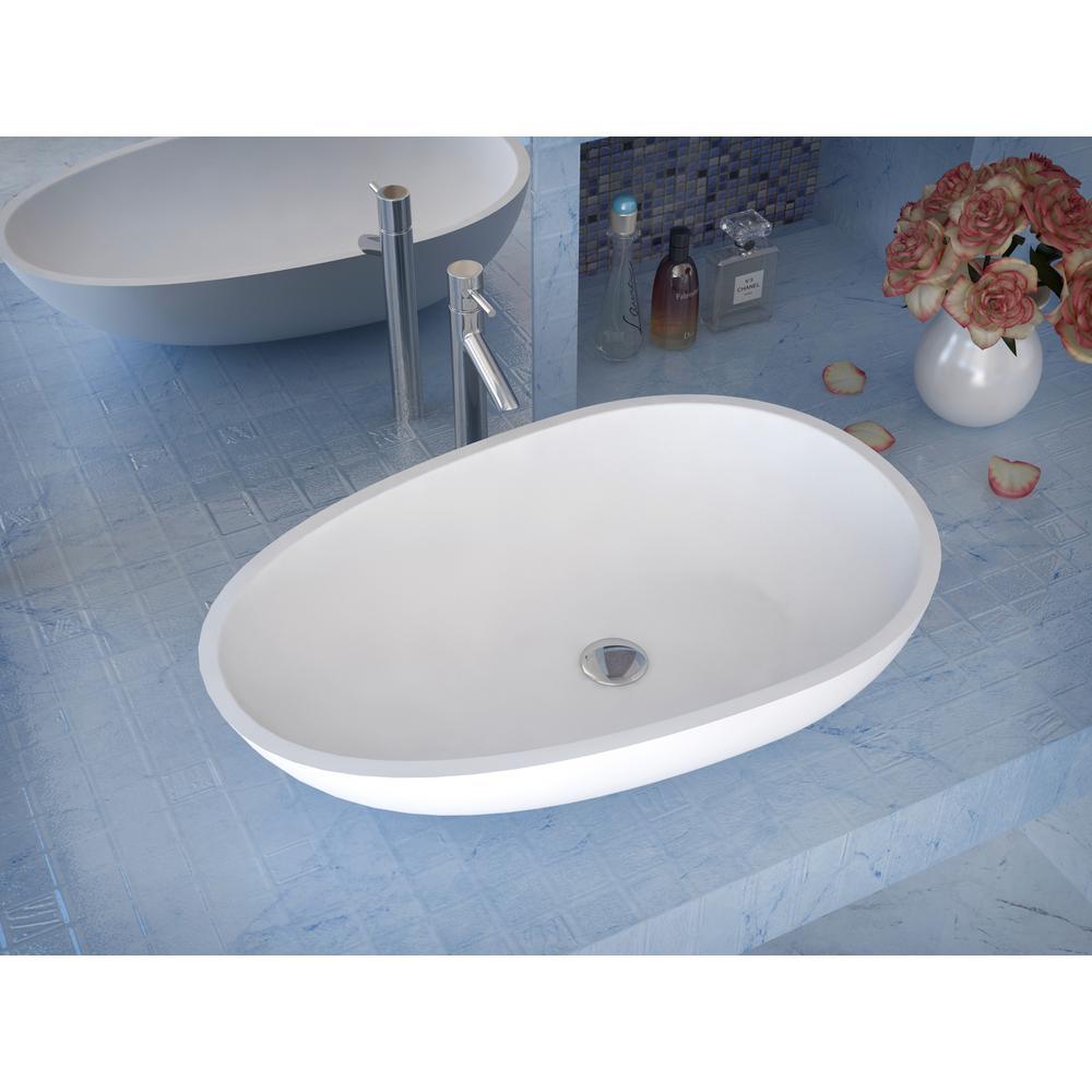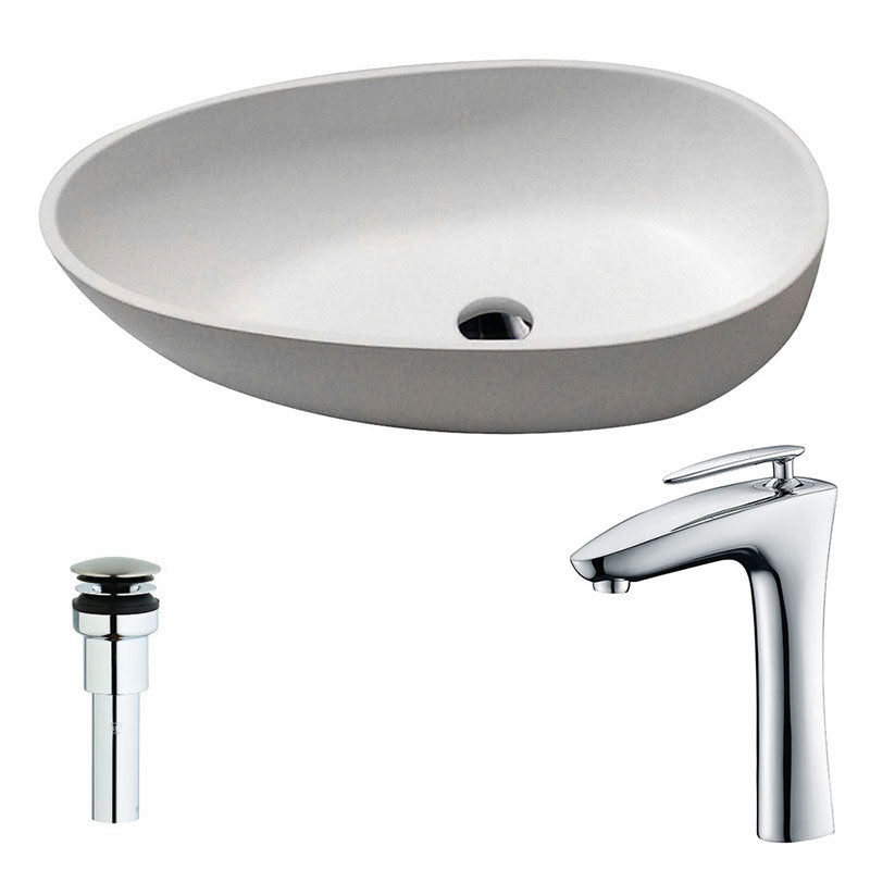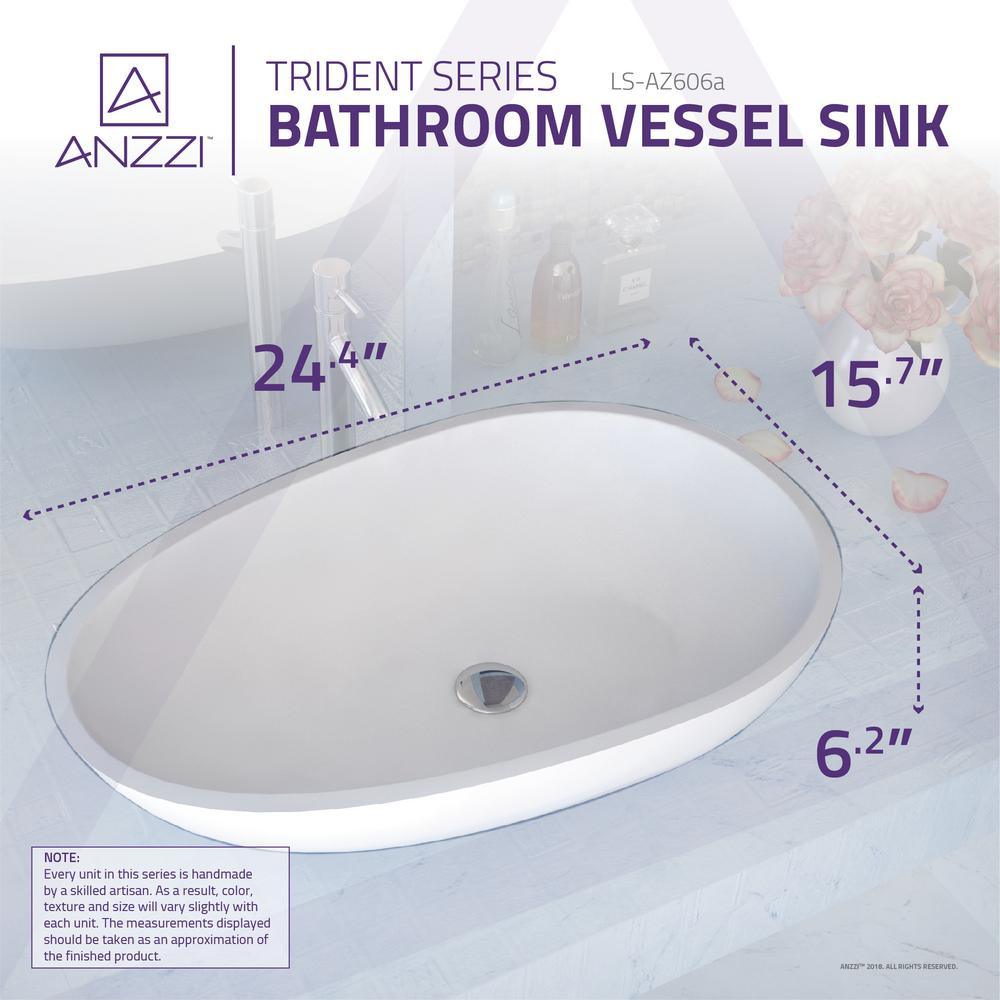 ANZZI Trident Man-Made Stone Vessel Sink with Pop-Up Drain, Matte White, 24.4 x 15.7 x 6.2 in