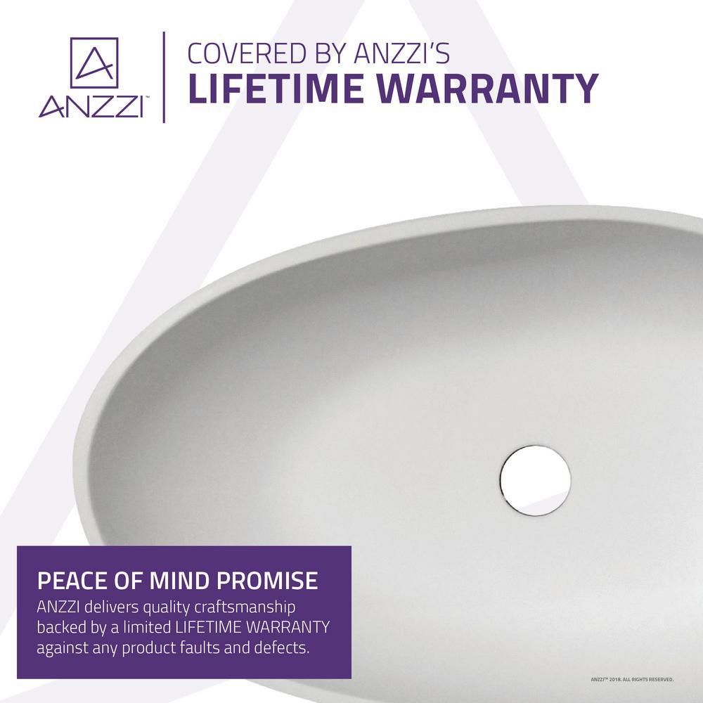 Sculpted from solid-surface man-made stone, the ANZZI Trident vessel sink delivers modern elegance and warm-to-the-touch durability. Its matte white finish and center drain create a sleek, minimalist statement for top-mount installation. Pop-up drain included for a complete, ready-to-style setup.