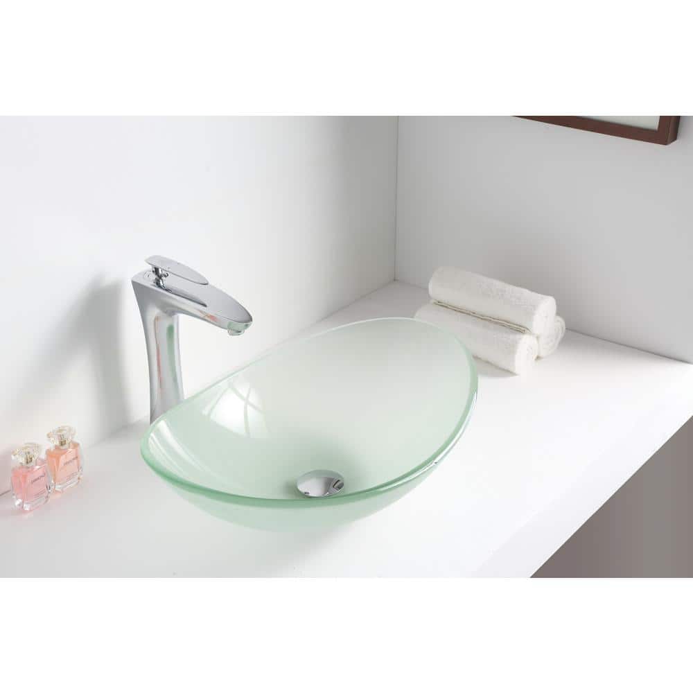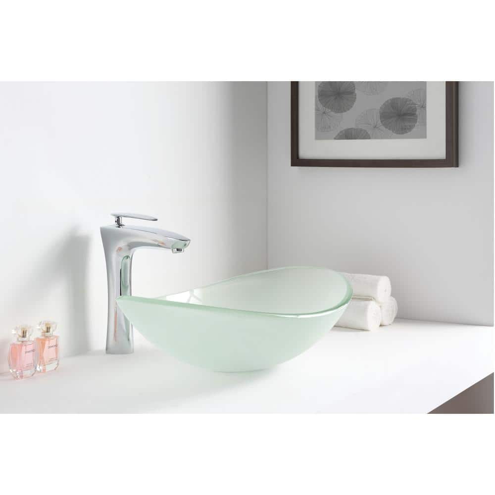 ANZZI Forza Series Deco-Glass Vessel Sink, 21 x 14.25 x 6.375 in, Lustrous Frosted