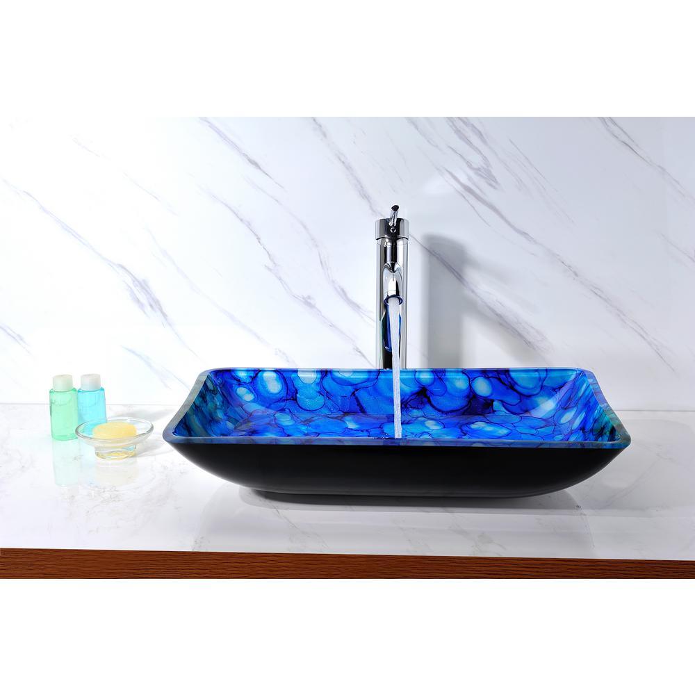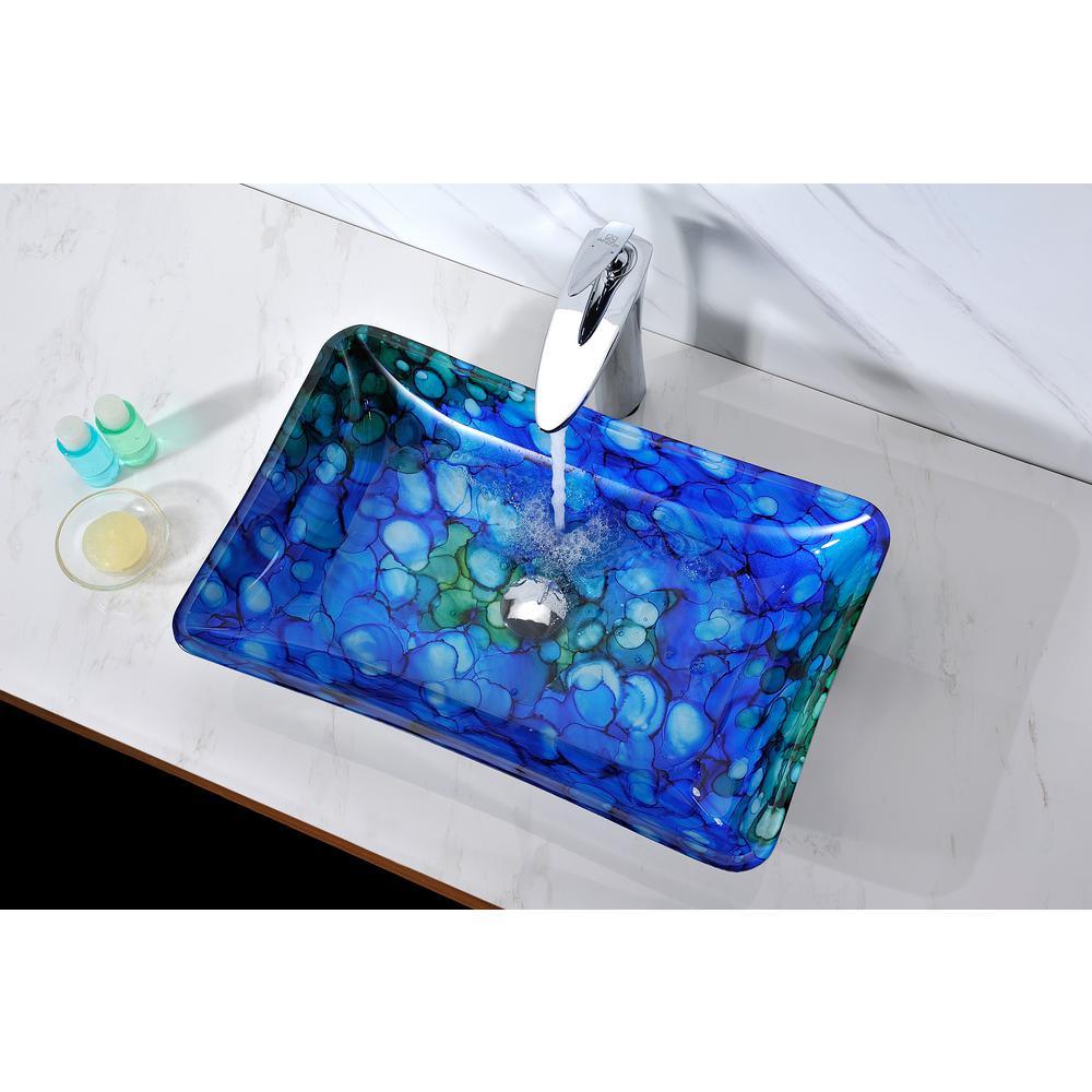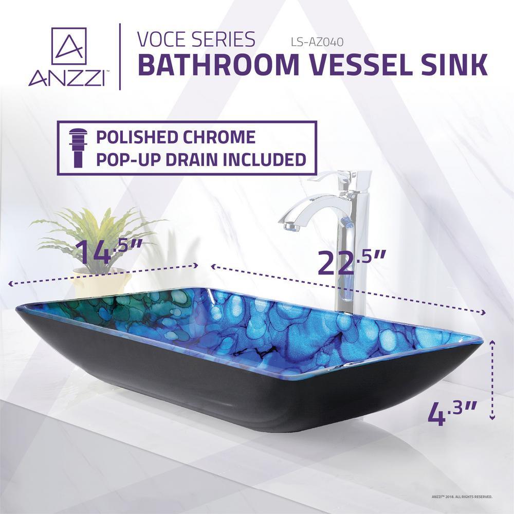 ANZZI Voce Series Rectangular Deco-Glass Vessel Sink in Lustrous Blue, 22.5 x 14.5 x 4.3 in.