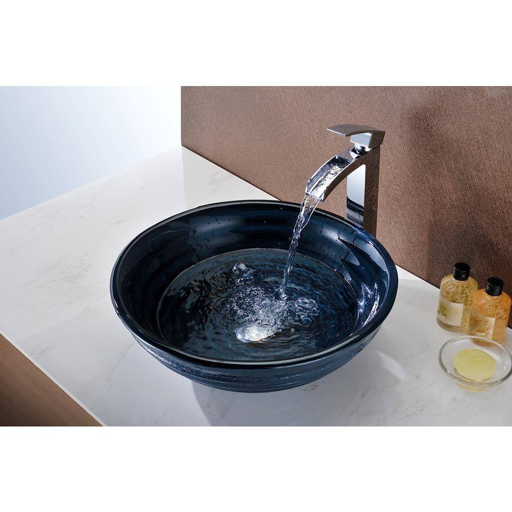 This vessel sink pools like moonlight over indigo water, casting a luxurious glow across the vanity. The coiled glass texture adds tactile depth, catching light in elegant strata. Pair it with a tall chrome faucet and pale stone countertop for mesmerizing contrast. It’s a sculptural essential that turns every rinse into a moment of indulgence.