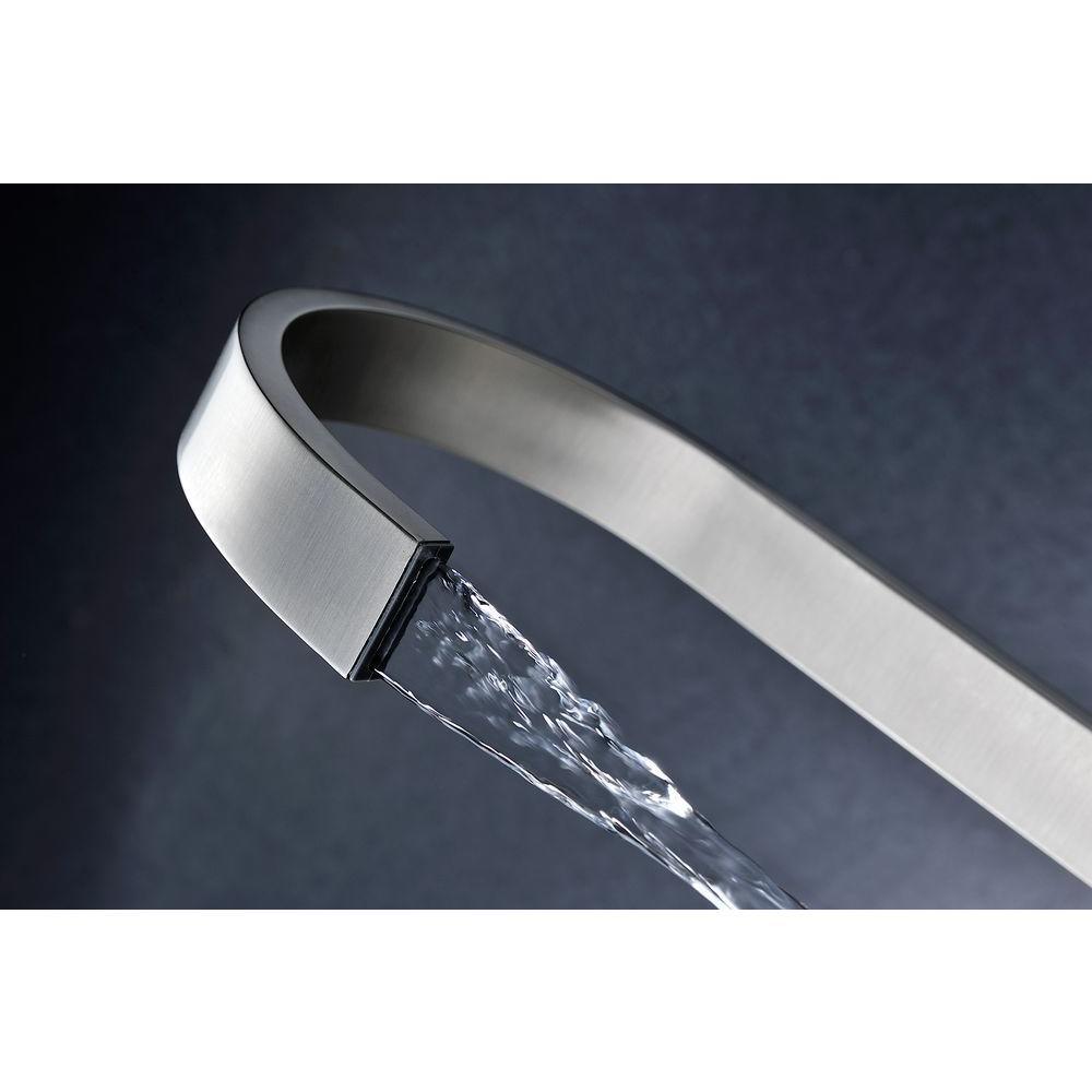 • Modern Design: Minimalist squared base with high-arc spout complements contemporary kitchens