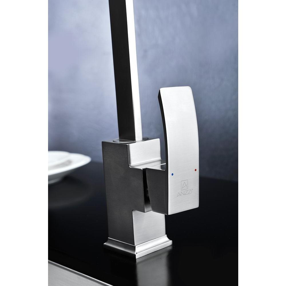 Sleek and durable, the ANZZI Opus Series kitchen faucet features a minimalist single-handle design with a brushed nickel finish. Built from lead-free RHINO ALLOY certified brass and certified for North American installations, it offers smooth control of water flow and temperature and includes a convenient Euro-grip sprayer style spout.