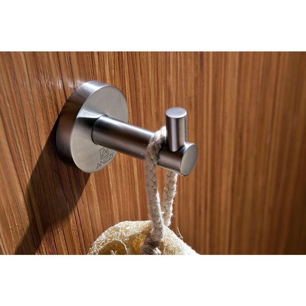 A sleek, wall-mounted single robe/towel hook from ANZZI’s Caster Series, finished in brushed nickel. Built from durable zinc/stainless materials with a concealed-mount design for a clean, modern look.