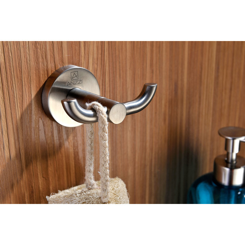 A modern double robe hook from ANZZI’s Caster Series designed for sleek, space-saving organization. Built for lasting performance with a scratch-resistant finish and easy wall-mount installation.