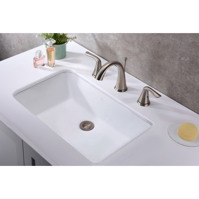 A sleek, rectangular undermount bathroom sink from ANZZI’s Rhodes Series crafted in white vitreous china. Built-in overflow and a non-porous polished finish deliver durability and easy cleaning for everyday use.