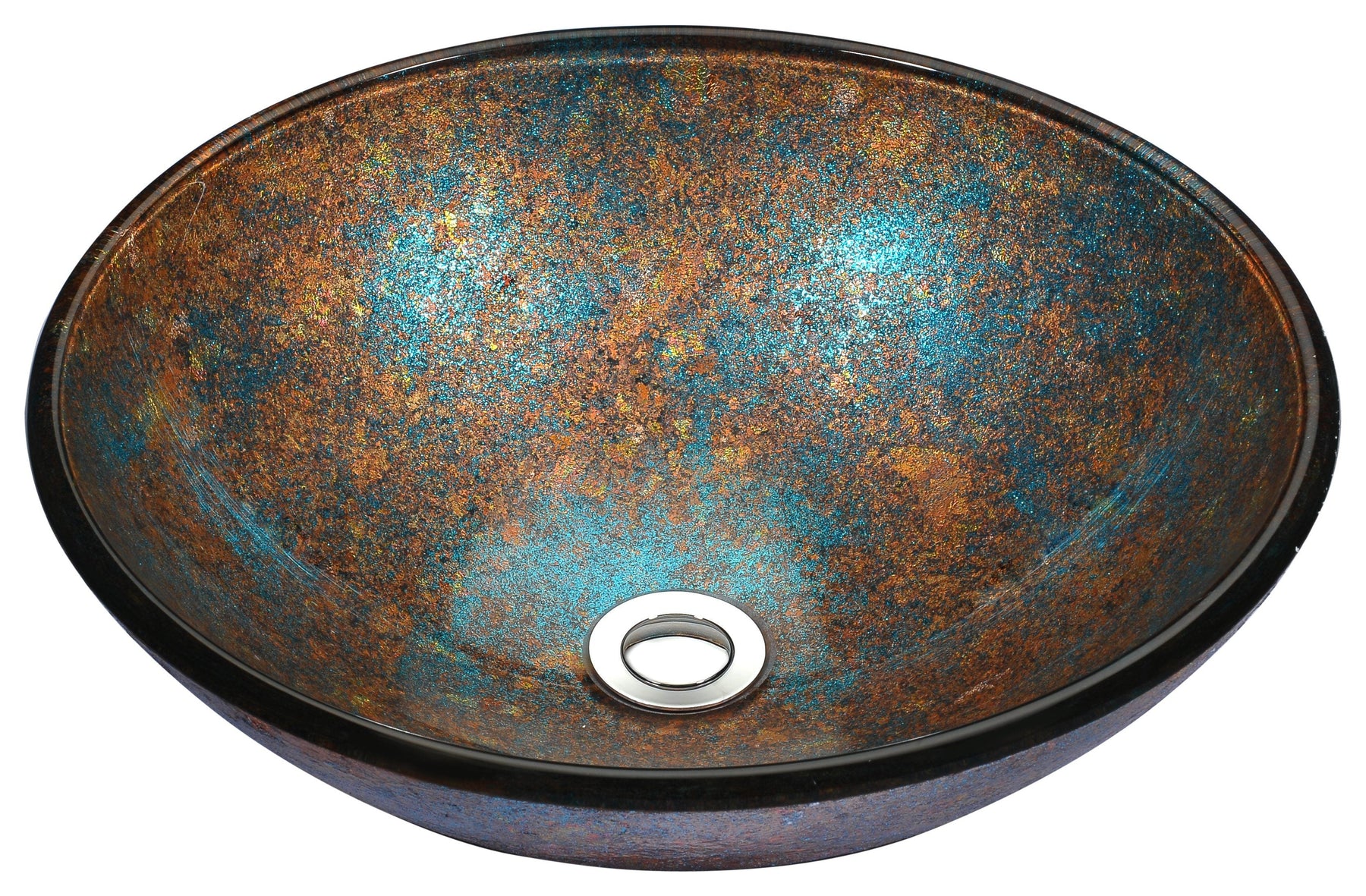 ANZZI Stellar Series Deco-Glass Vessel Sink, Emerald Burst, 16.5 x 5.7 in