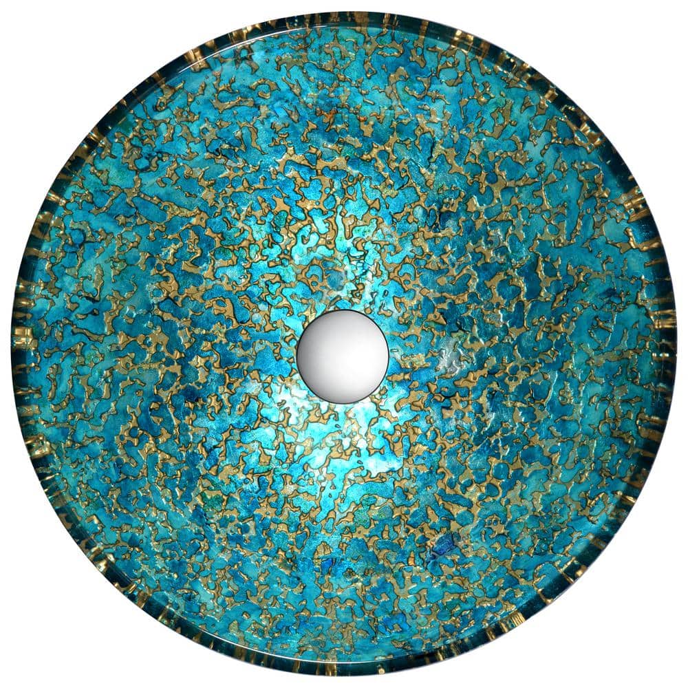 Chrona Round Glass Vessel Sink, Gold/Cyan Mix