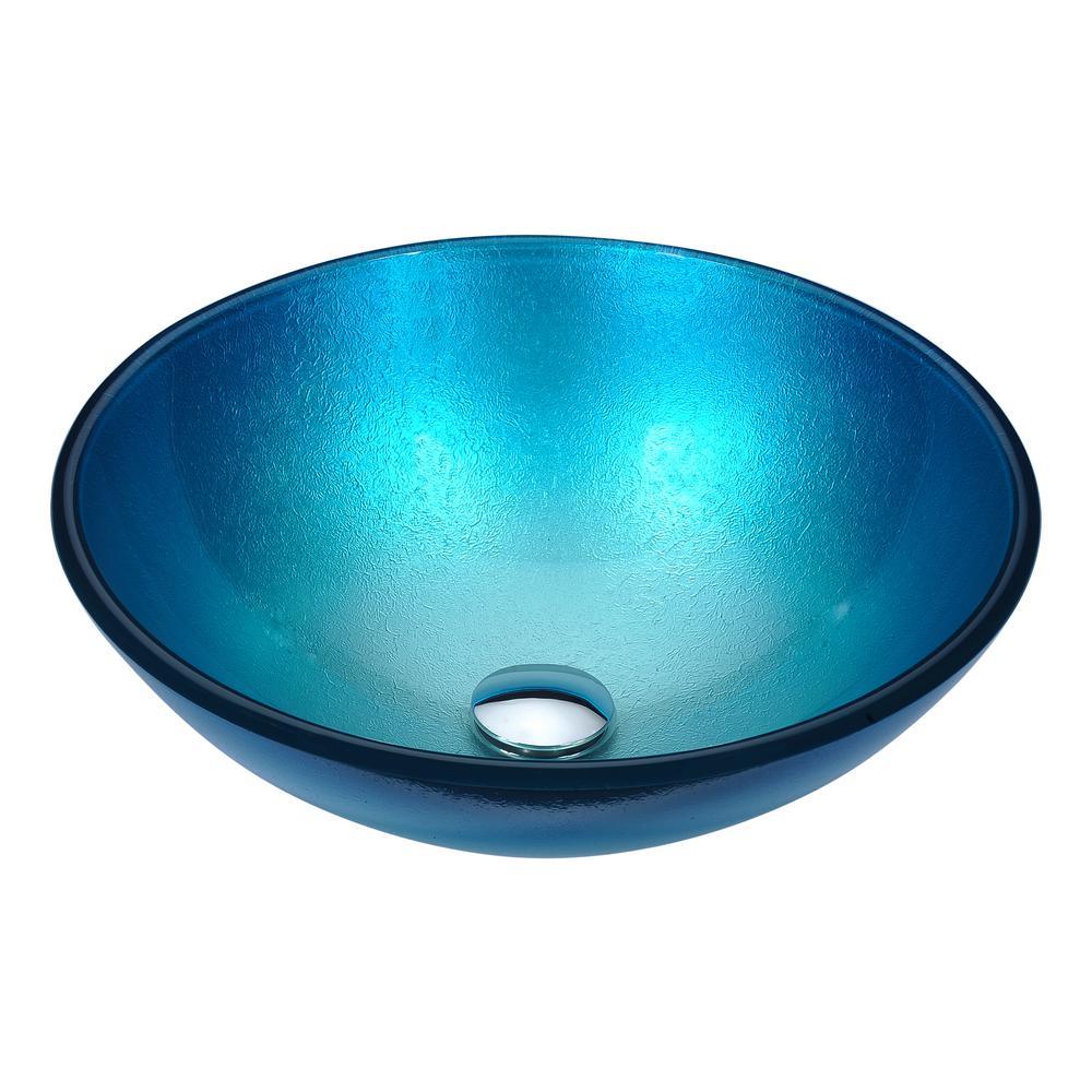 A striking round vessel sink crafted from ANZZI designer Deco-Glass in a vivid Coral Blue. Tempered glass resists scratches and stains while the non-porous surface makes cleanup effortless. Ideal for modern bathroom upgrades with center drain and included polished chrome pop-up drain.