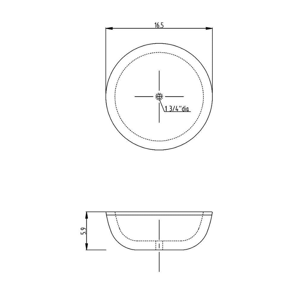 A: Approximately 16.5 in. diameter and 5.7 in. height.