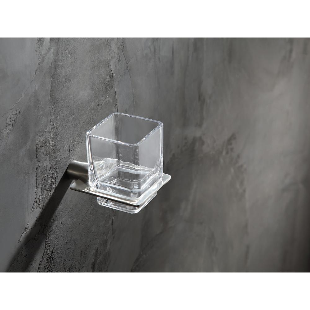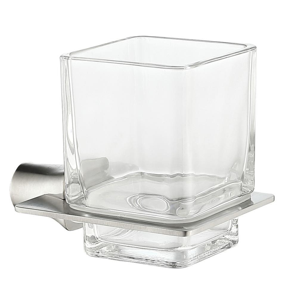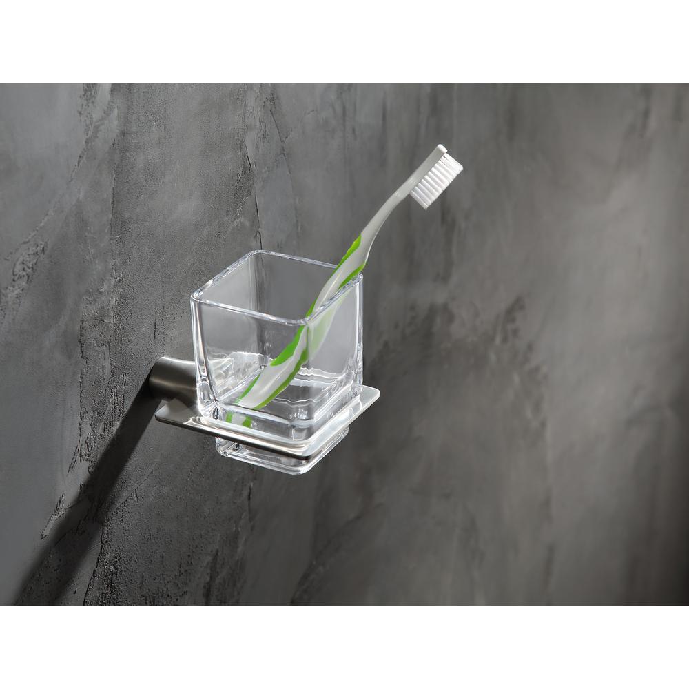 Keep counters clear with this wall-mounted toothbrush holder from ANZZI’s Essence collection. Crafted from stainless steel with a brushed nickel finish and a clear glass tumbler, it blends modern European styling with durable, scratch-resistant performance.