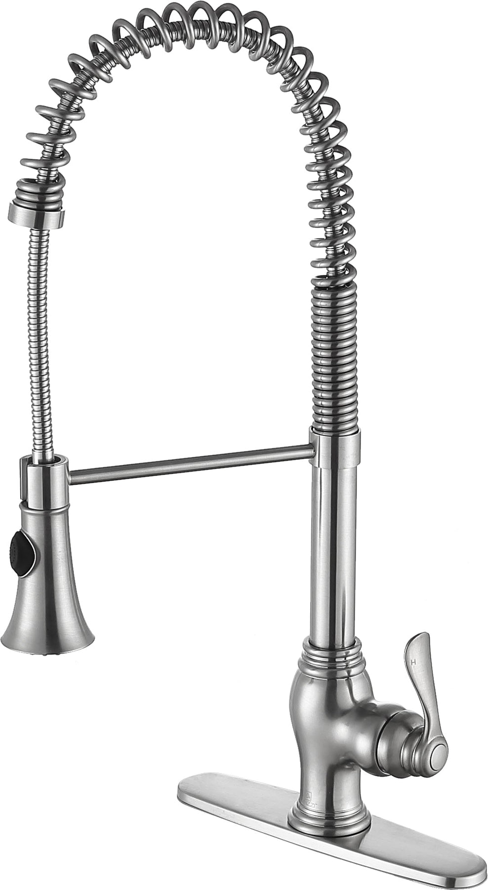- Professional-Style Sprayer: High-arc spring spout with pull-down spray head for flexible cleaning