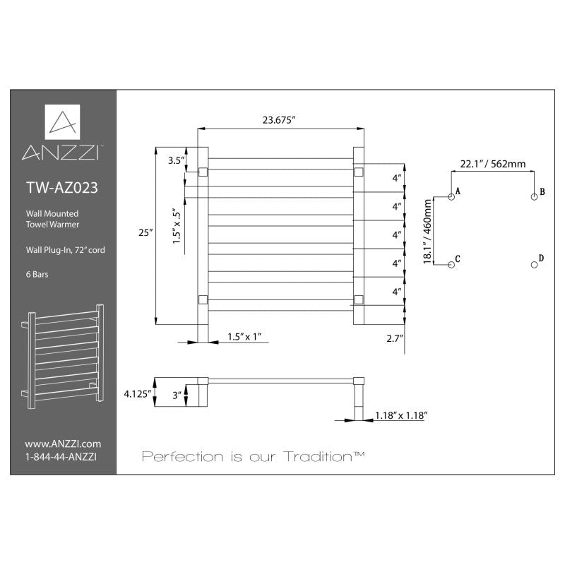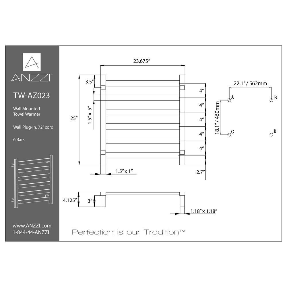 ANZZI Note 6-Bar Stainless Steel Wall Mounted Towel Warmer, Matte Black, 23.62 x 4.13 x 25.2 in