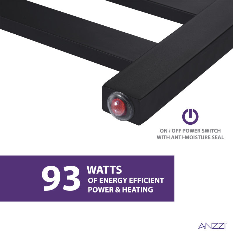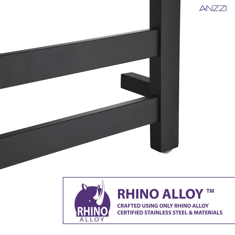 Warm your towels quickly with ANZZI’s Note 6-bar electric towel warmer. Crafted from RHINO ALLOY certified stainless steel with a matte black finish, it mounts to the wall and plugs into a standard outlet for simple installation.