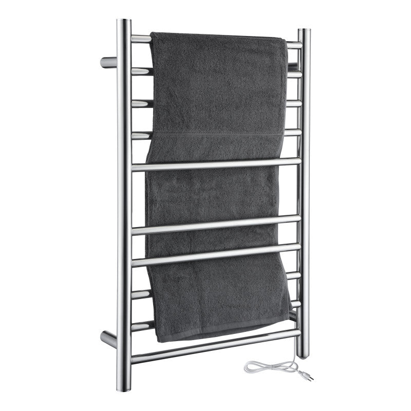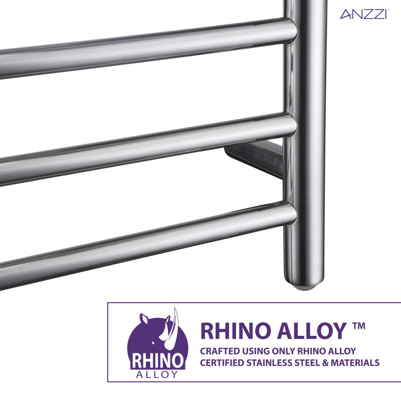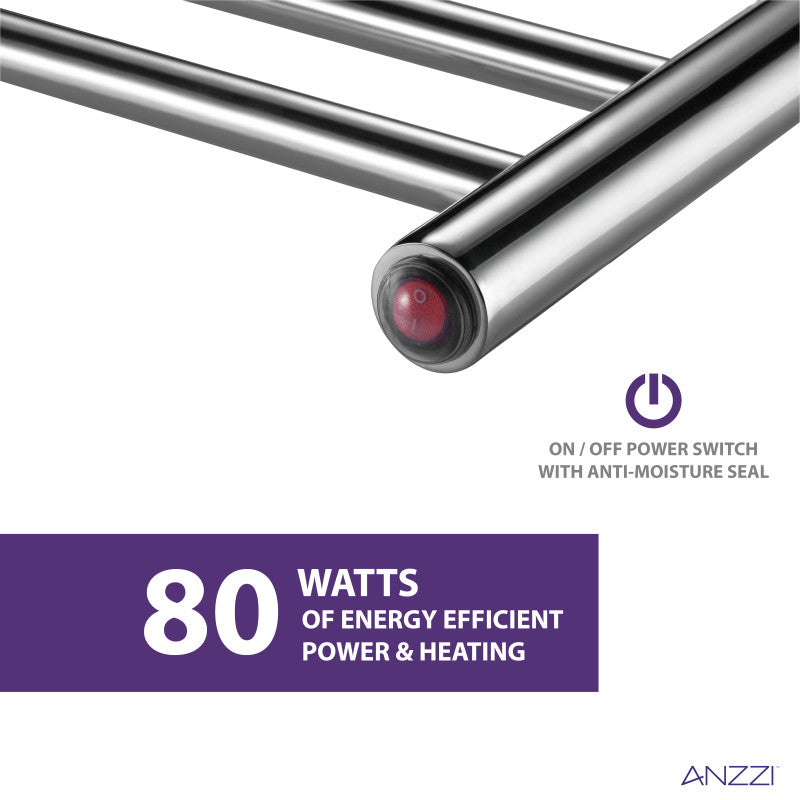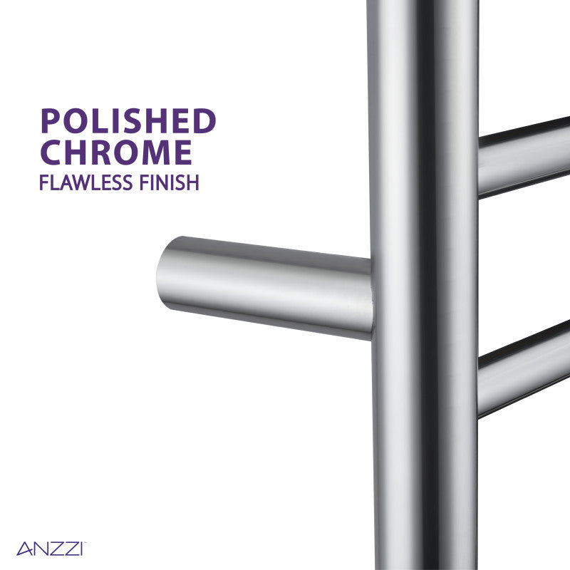 Warm your towels with the ANZZI Bali Series 10-bar electric towel warmer. Crafted from RHINO ALLOY certified stainless steel with a polished chrome finish, it mounts to the wall and heats efficiently at just 80 watts.
