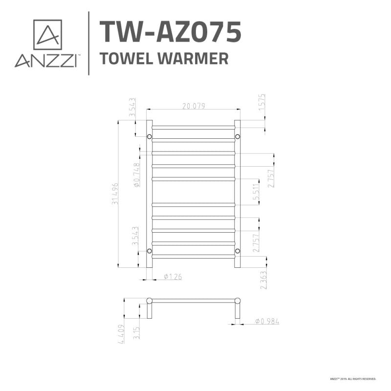 ANZZI Bali Series 10-Bar Stainless Steel Wall Mounted Electric Towel Warmer, Polished Chrome, 20 x 31.5 in