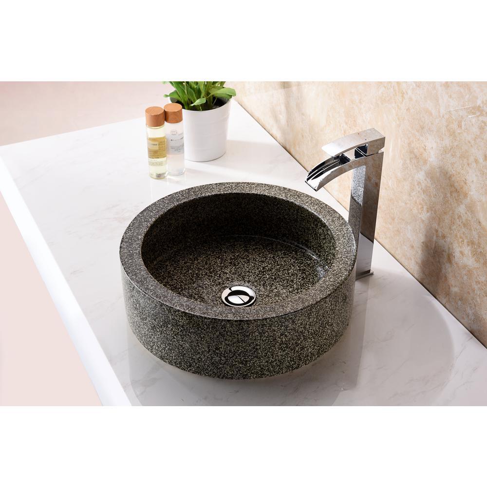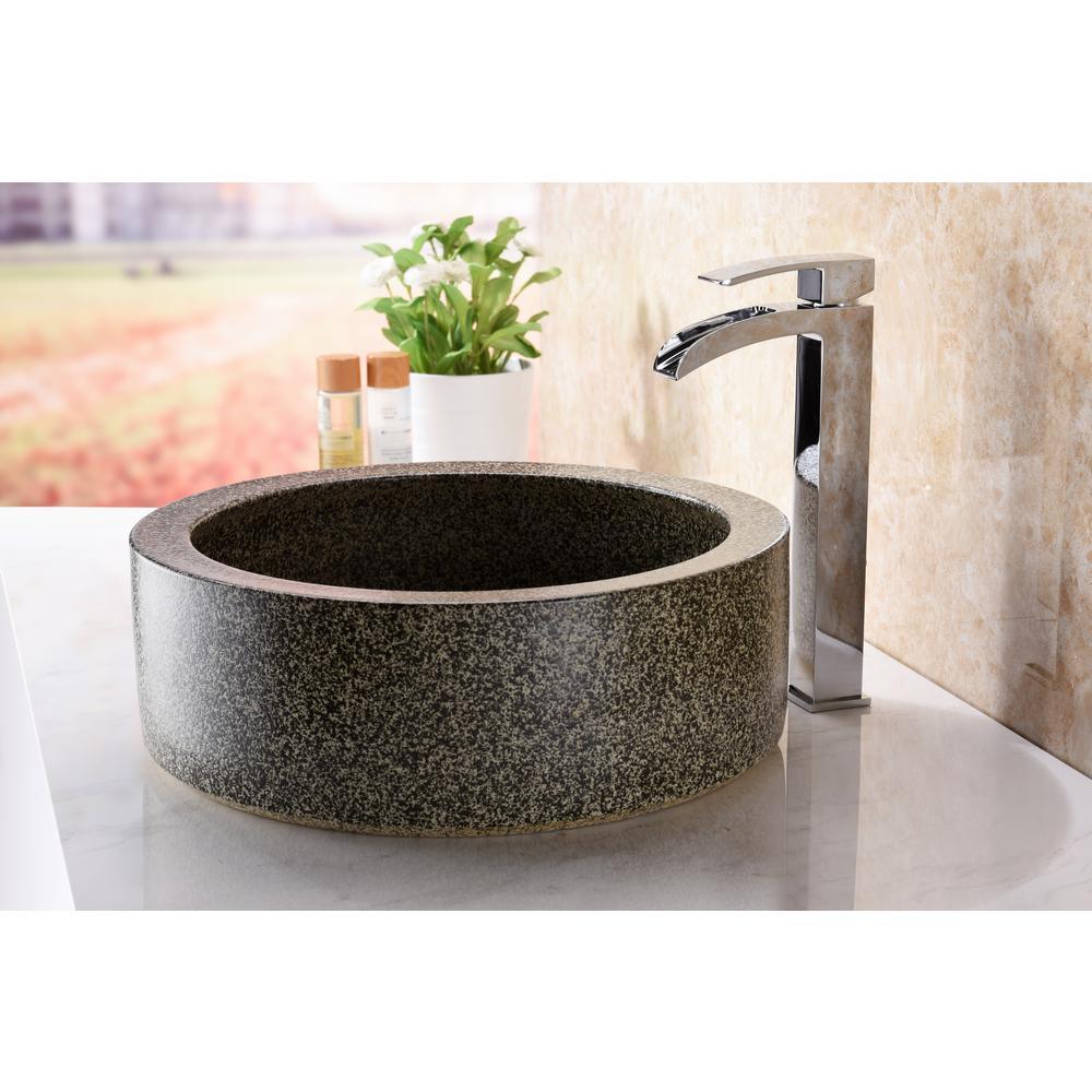 Elevate your vanity with this durable, speckled stone vessel sink—add to cart and transform your bath today.