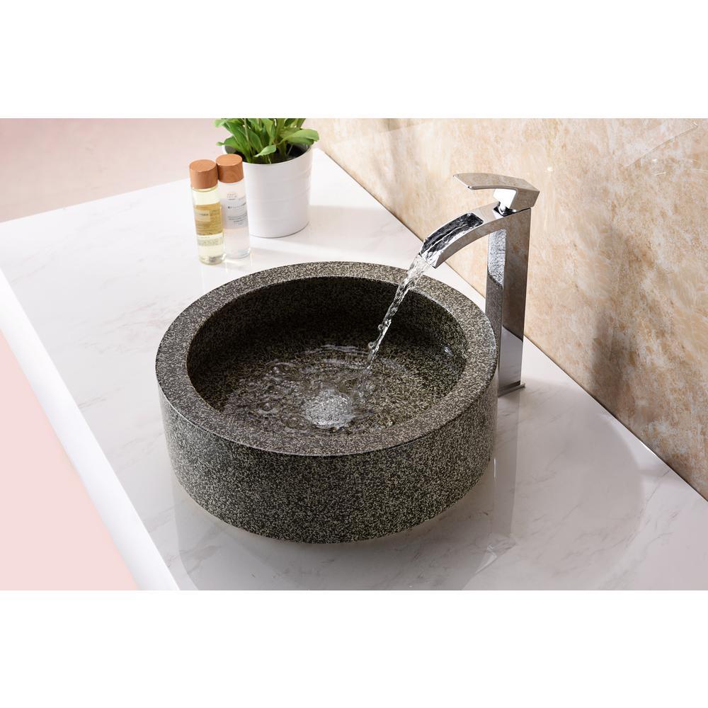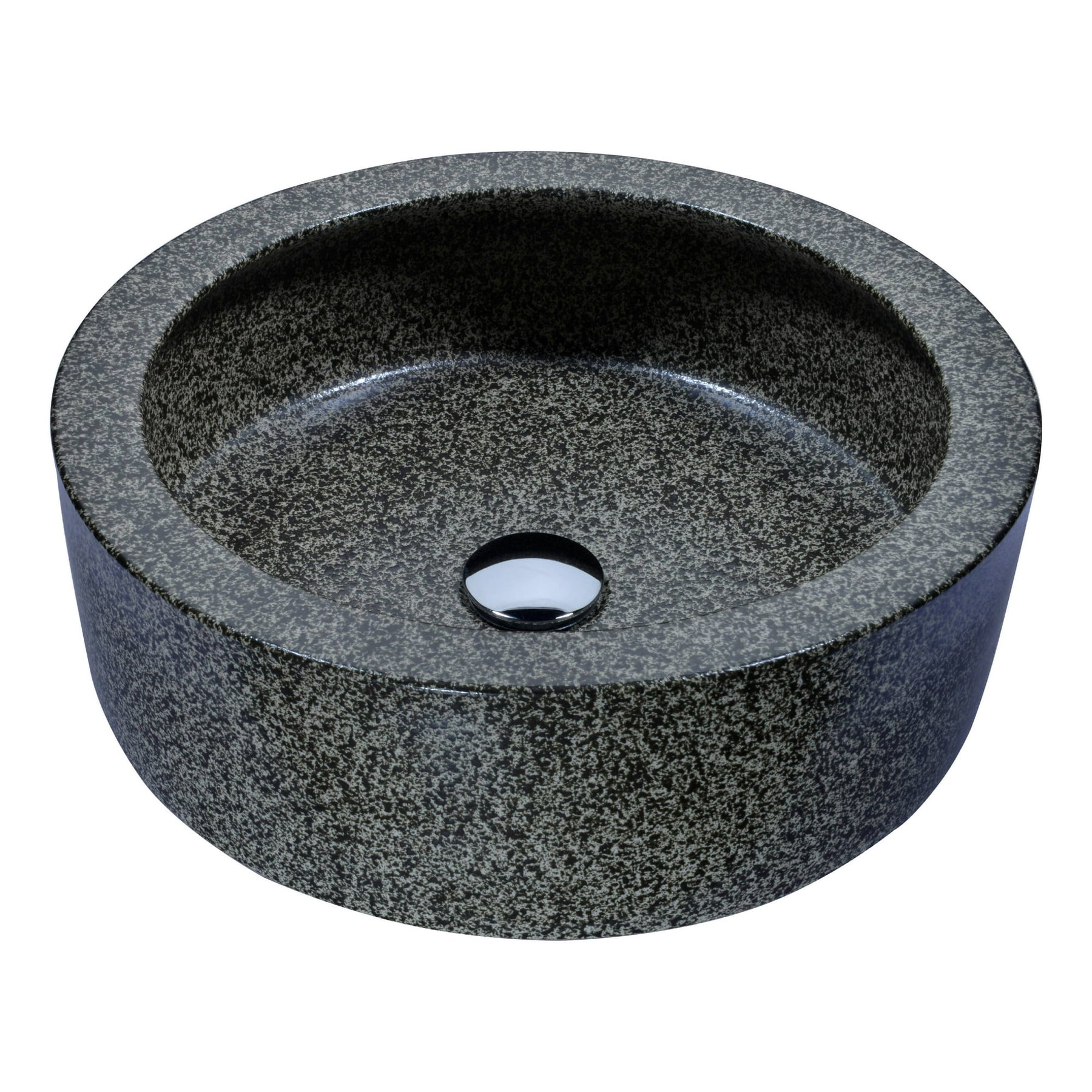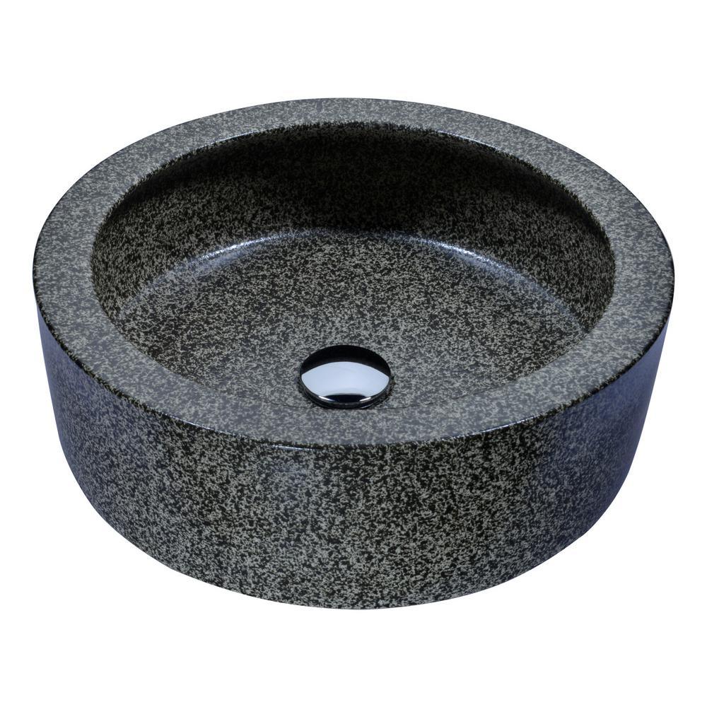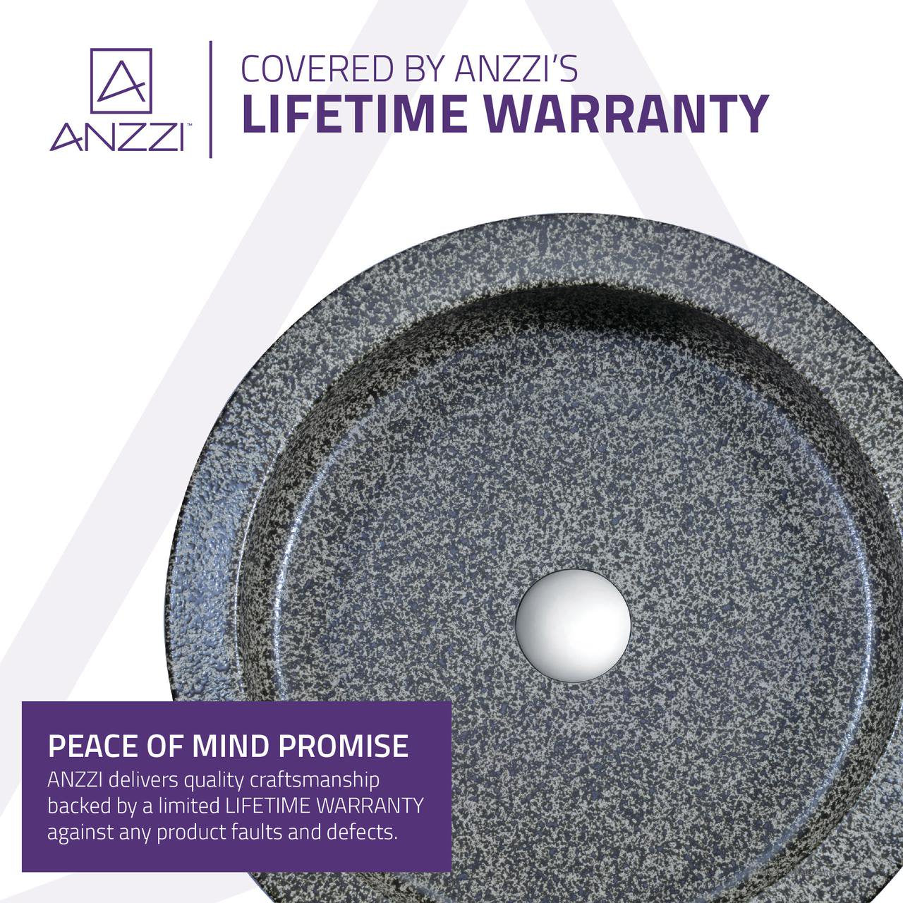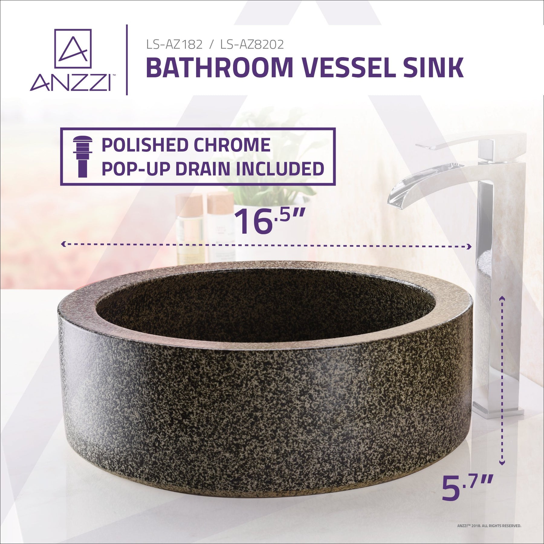 ANZZI Black Iro Round Vessel Sink, Speckled Stone, 16.5 x 5.7 in
