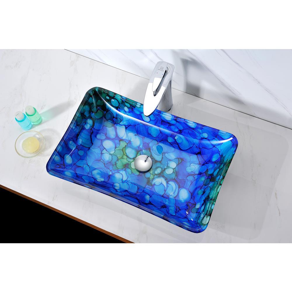 The ANZZI Avao Series sink is a traditionally crafted rectangular vessel sink adorned in a Lustrous Blue Finish. Each ANZZI vessel sink is formed using RHINO ALLOY certified high tempered Deco-Glass material. The result is a dynamically shaped and captivating vessel centerpiece for any bathroom counter.