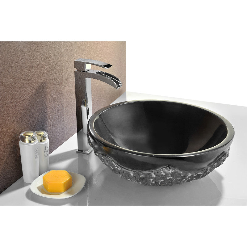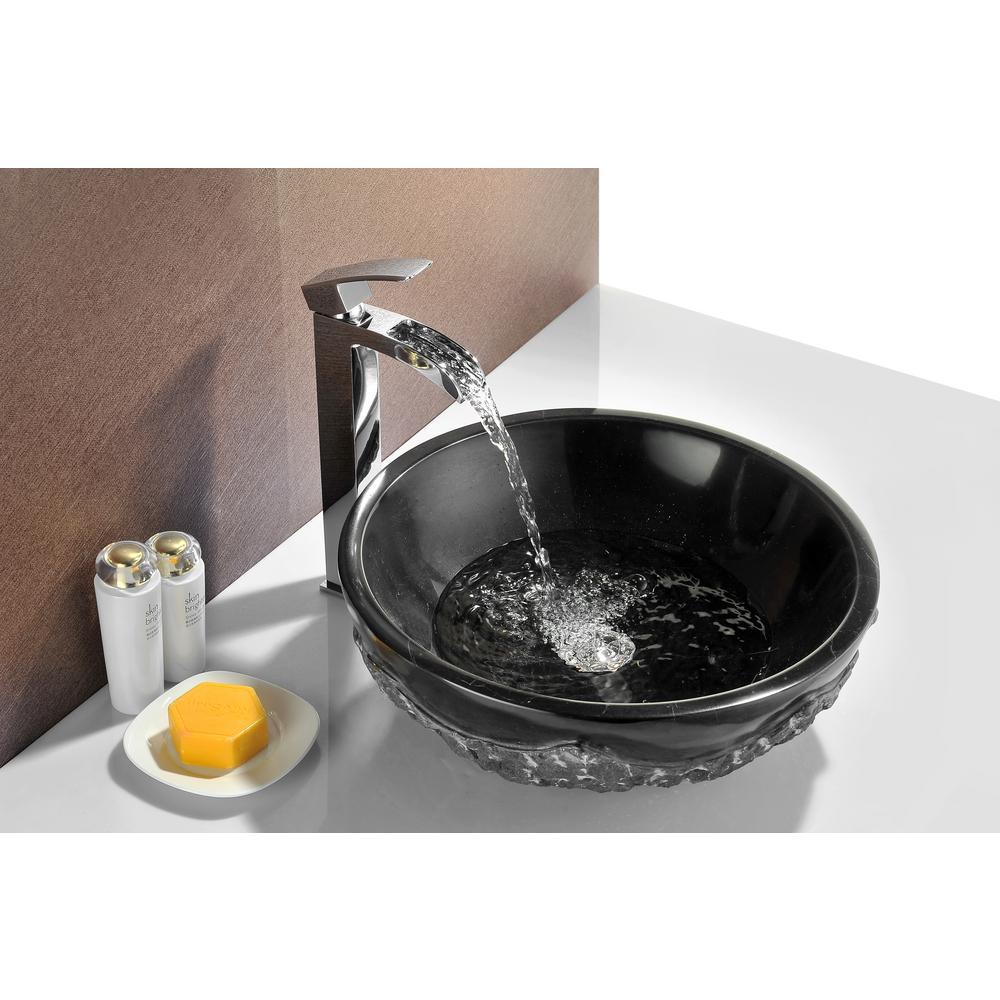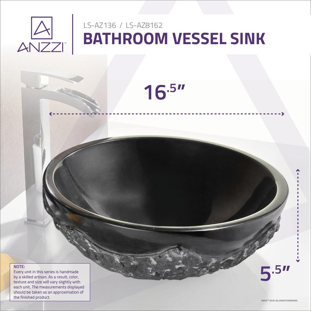 ANZZI Diver Vessel Sink in Black Jade, 16.5 in. Round, 5.5 in. H