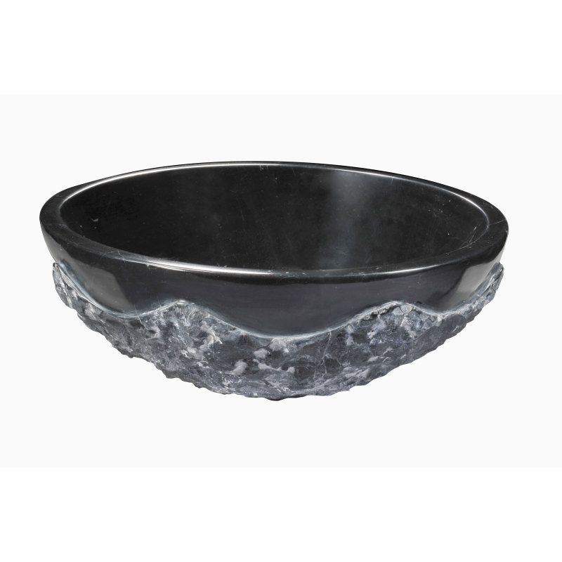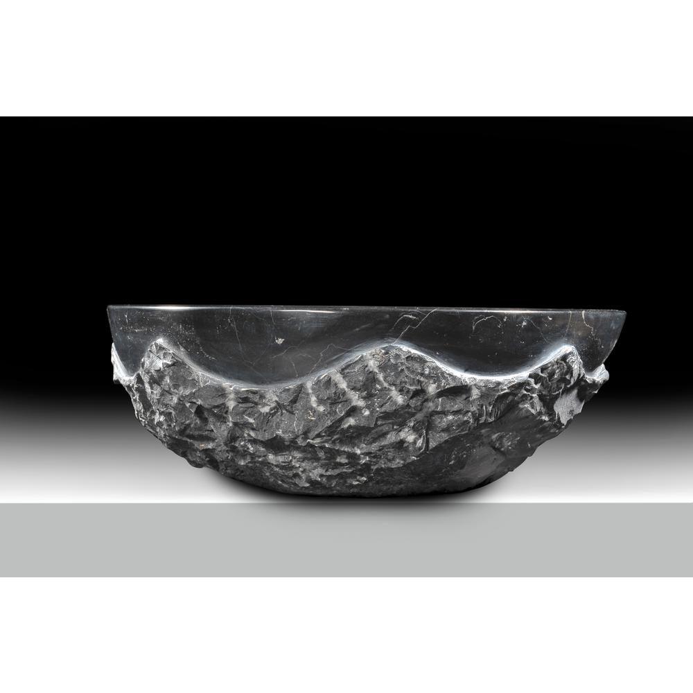 This vessel sink is a moody, sculptural moment—sleek, inky polish inside with a raw, hewn edge that feels artful and elemental. The Black Jade stone shimmers softly, catching light like a midnight tide. Style it with a tall chrome or matte black faucet and a pared-back vanity to let the texture sing. It’s a statement of modern luxury that anchors the entire bath experience.