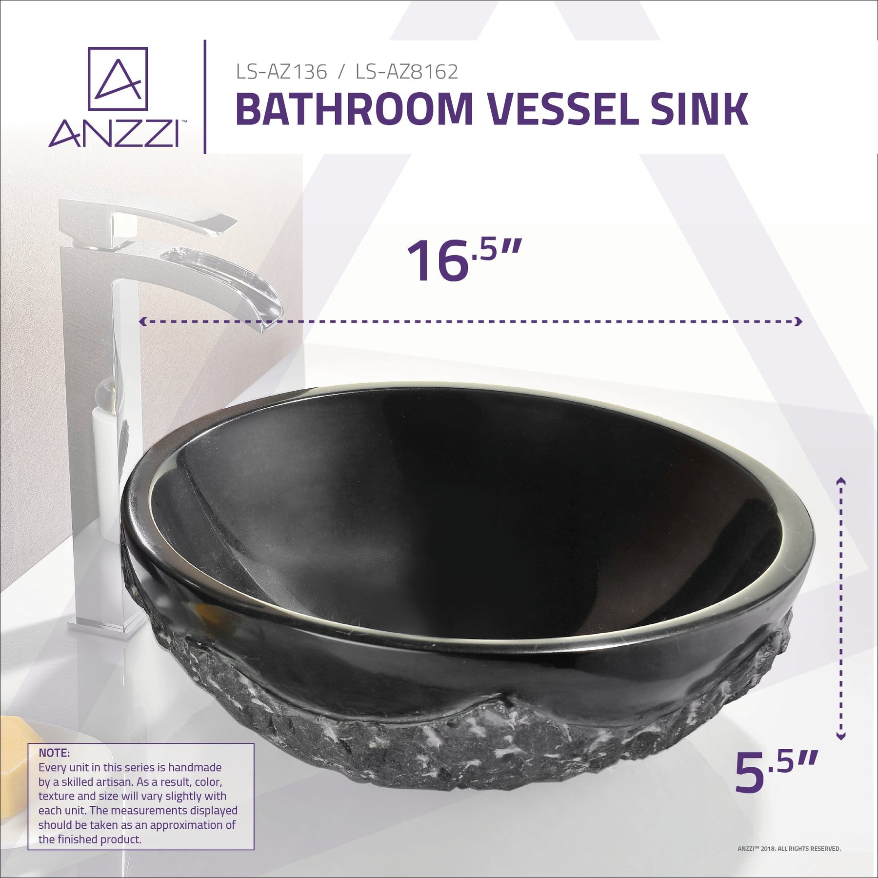 • Polished Interior, Raw Edge: Silken-smooth basin with naturally formed exterior texture for organic appeal