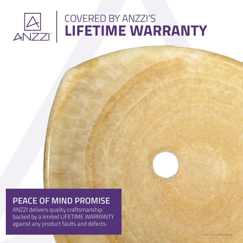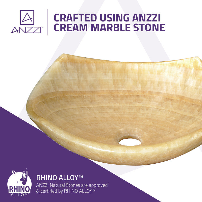 Handcrafted from RHINO ALLOY certified Cream Jade natural stone, the ANZZI Vespa vessel sink brings sculptural elegance and lasting durability to the bath. Its non-porous surface resists stains and germs, while the countertop-mounted design creates a striking focal point.