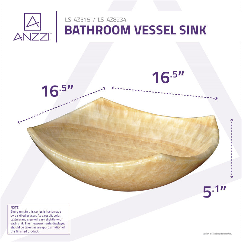 ANZZI Vespa Natural Stone Vessel Sink in Cream Jade, 16.1 x 16.1 x 5.1 in.