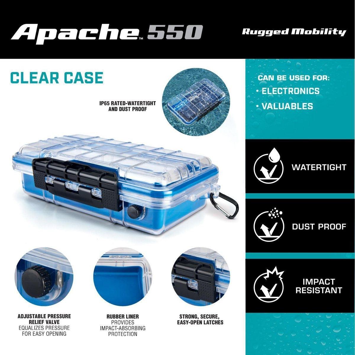 Protect electronics and valuables with this exceptionally rugged clear case from Apache®. Constructed from extremely durable polypropylene, this professional quality hard case takes a beating while protecting the contents from impact, moisture and microscopic dust. The built-in purge valve equalizes pressure so you can open the case after changing elevations.