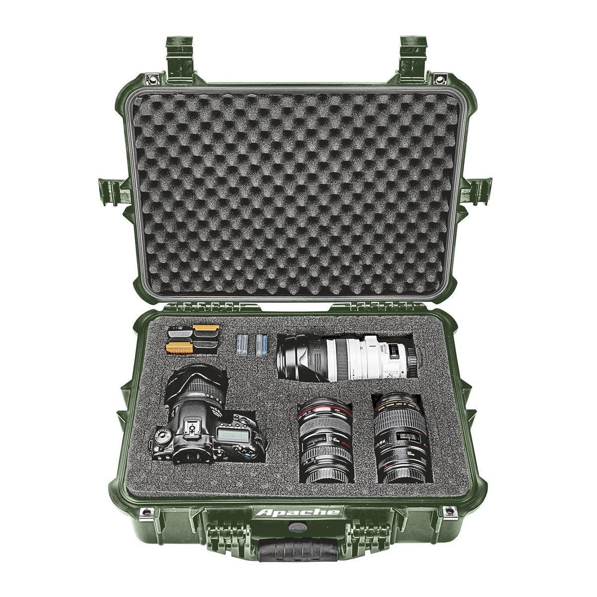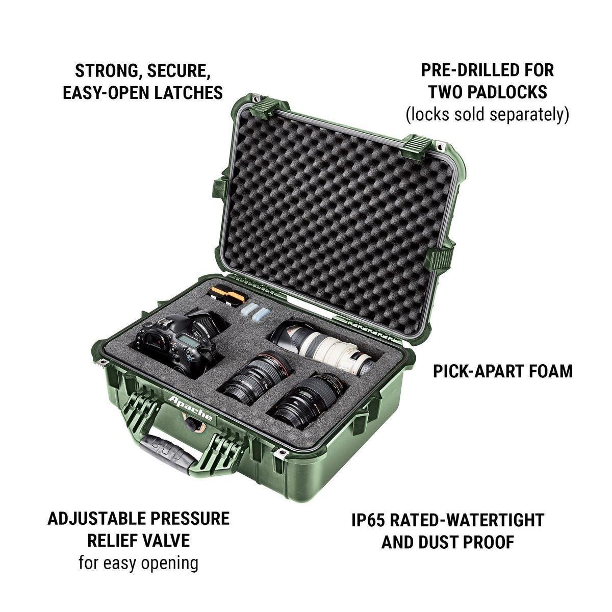 Protect cameras, microphones, handguns and other specialized equipment with this exceptionally rugged Apache® weatherproof storage case. Constructed from extremely durable polypropylene, this professional quality hard case takes a beating while protecting the contents from impact, moisture and microscopic dust. The built-in purge valve equalizes pressure so you can open the case after changing elevations.
