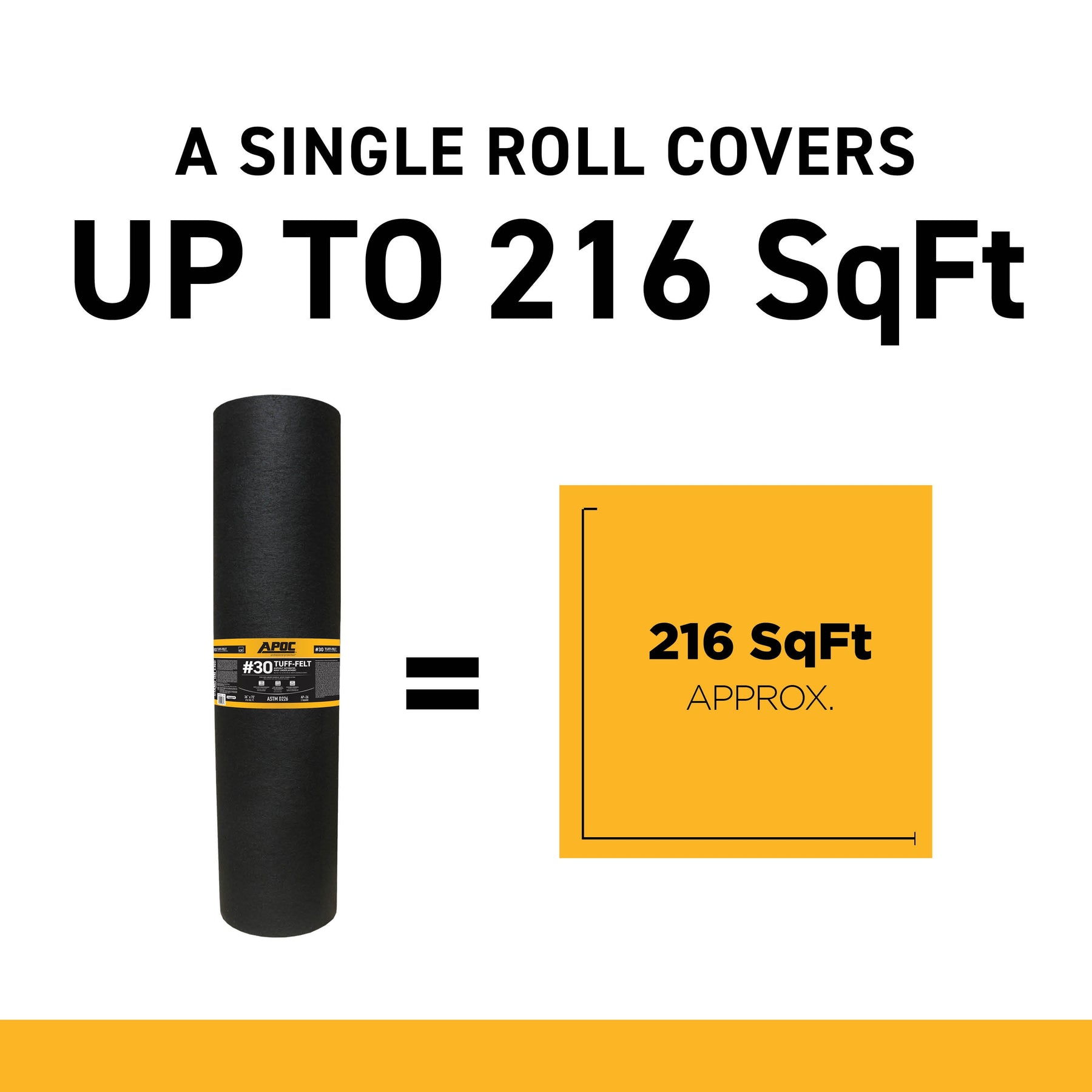 • ASTM Compliance: #30 HD felt meeting ASTM D226; 36-in x 71.75-ft, 200-sq ft coverage