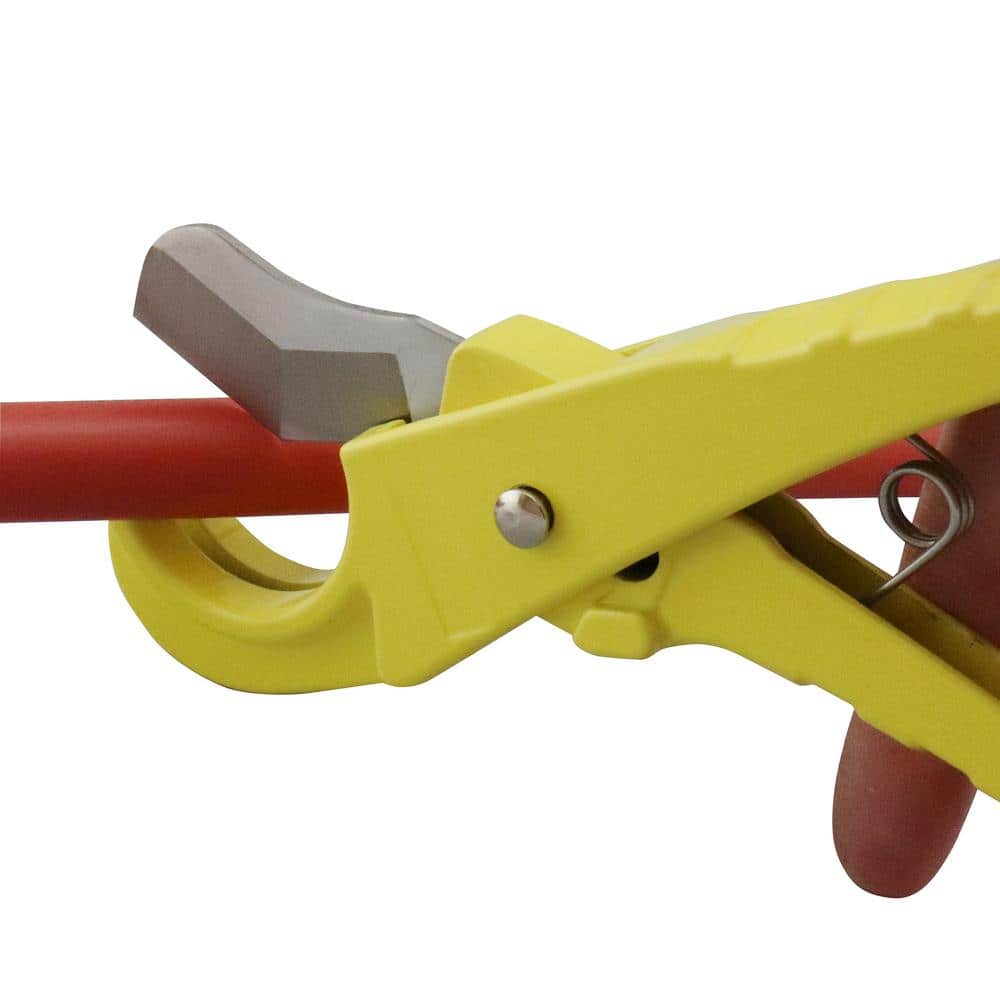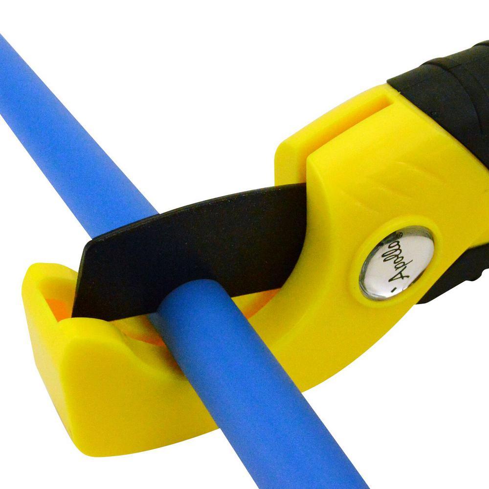 This compact Apollo pipe cutter delivers clean, burr‑free cuts on 1/2 in., 3/4 in., and 1 in. PEX and similar plastic tubing. A Teflon‑coated blade and spring‑loaded handles provide smooth, repeatable operation in tight spaces for quick plumbing installs and repairs.