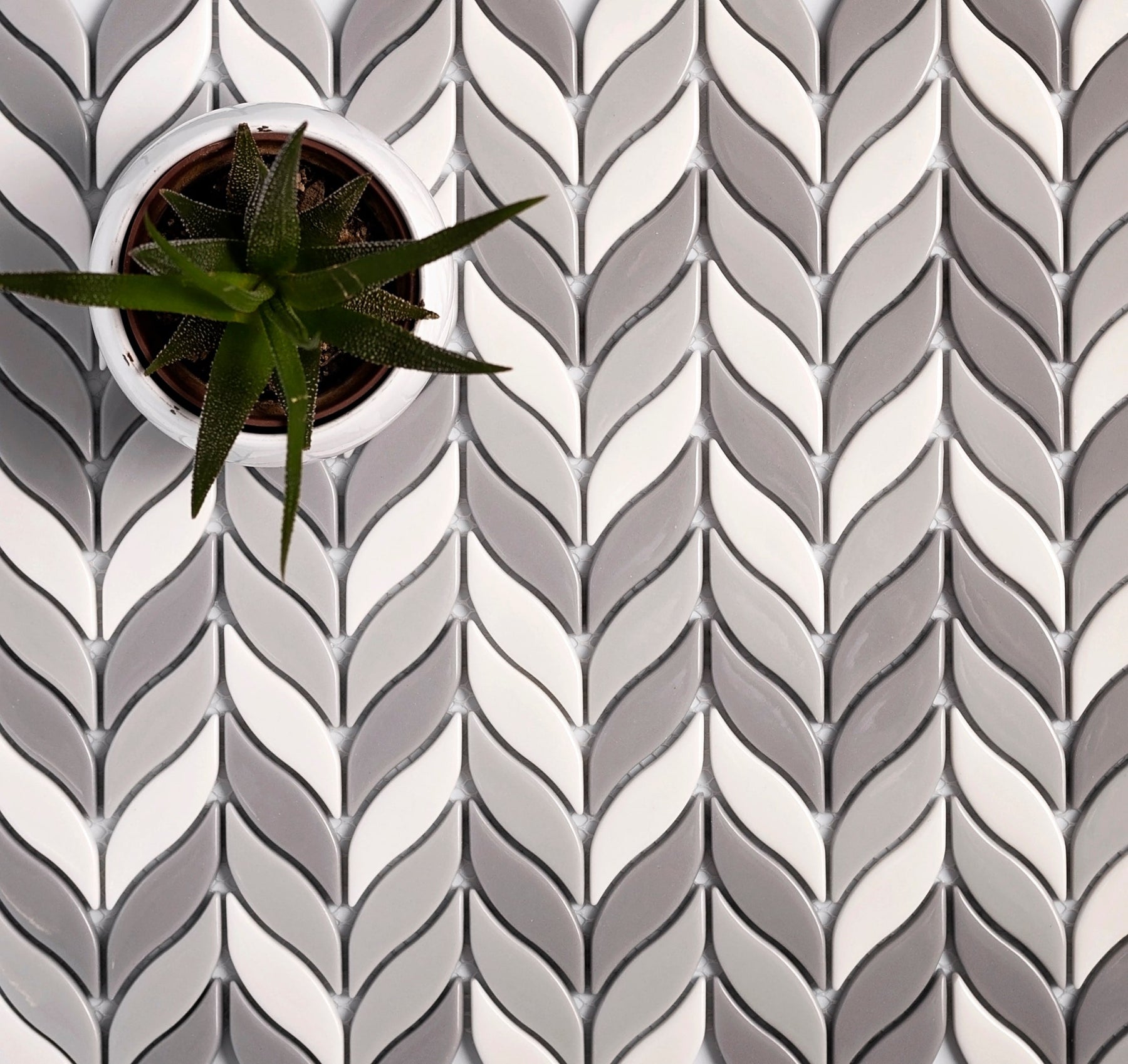 Discover the delicate elegance of the Alabaster Gray & White Matte Glass Tile, showcasing a mixed-pattern design ideal for modern spaces. Perfect for sampling your design ideas, this tile offers a sophisticated blend of grays and whites to inspire your next renovation project.