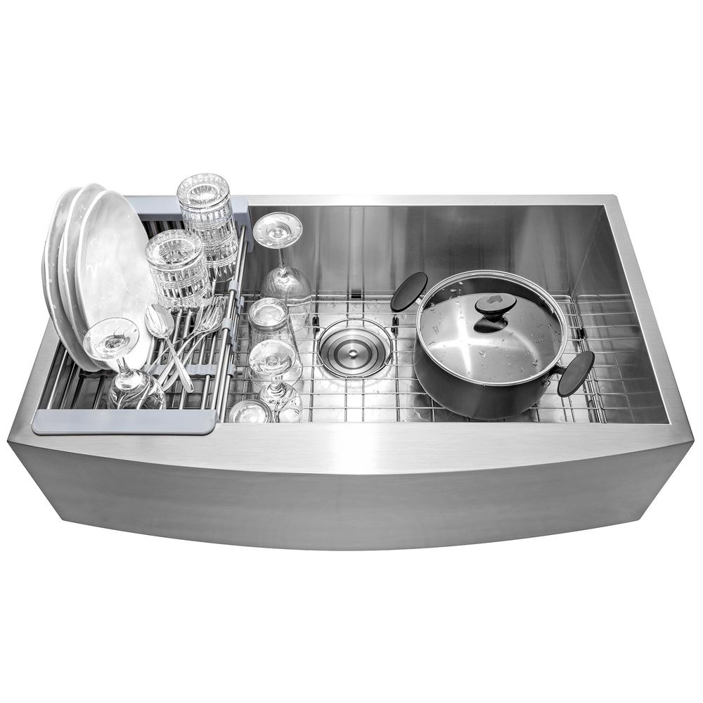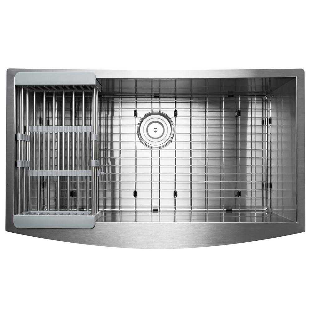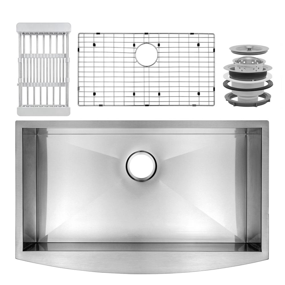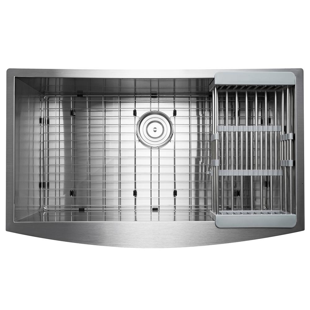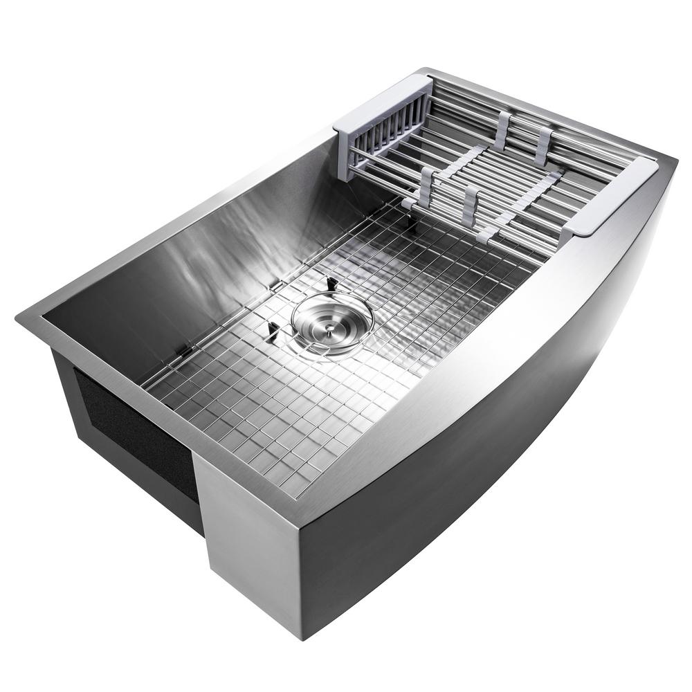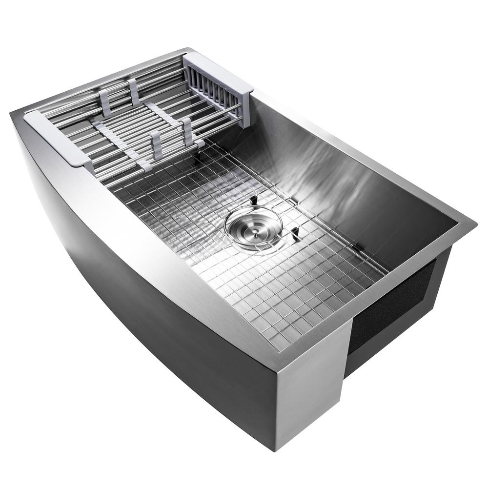 Handcrafted All-in-One Farmhouse Apron Front Stainless Steel 33 in. x 20 in. x 9 in. Single Bowl Kitchen Sink