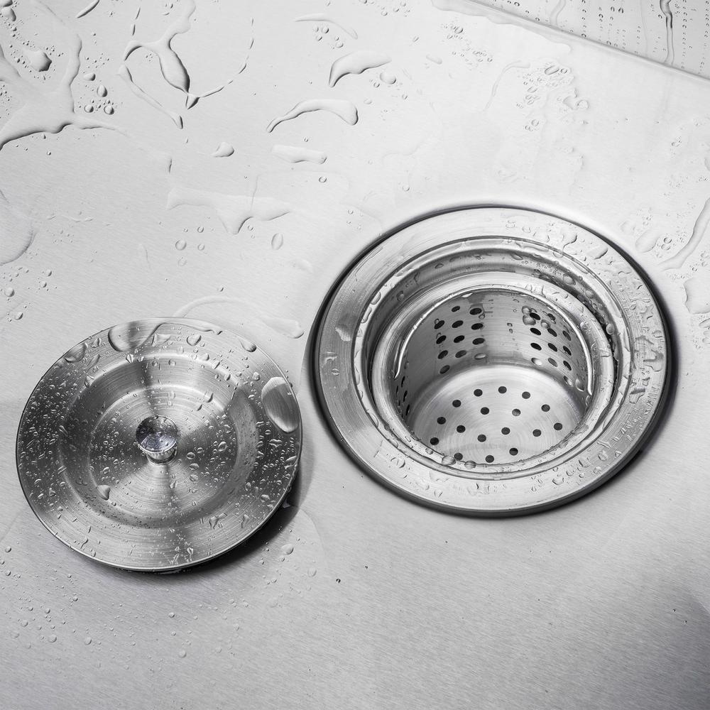 For professional quality and high durability, this farmhouse apron kitchen sink has classic styling with commercial-grade brushed stainless steel. Our apron undermount sink fits nicely into homes with traditional styling. An included stainless steel drain assembly matches perfectly and also features a dish grid to make rinsing off fast and simple. Insulating rubber is installed on the bottom of the sink to keep vibrations and loud sounds at bay for a better experience. All hardware needed for installation is included.