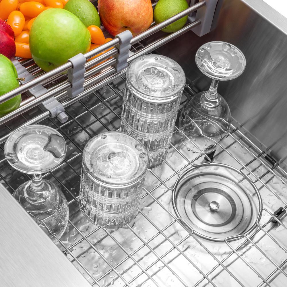 • Kit Includes: Sink, multifunction adjustable tray, dish grid, strainer kit, and installation hardware