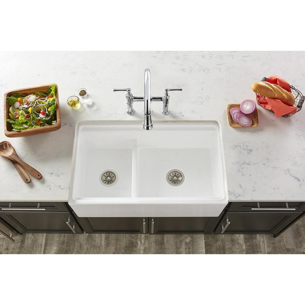 Farmhouse Apron Front Fireclay 33 in. Double Bowl Kitchen Sink in White with Aqua Divide