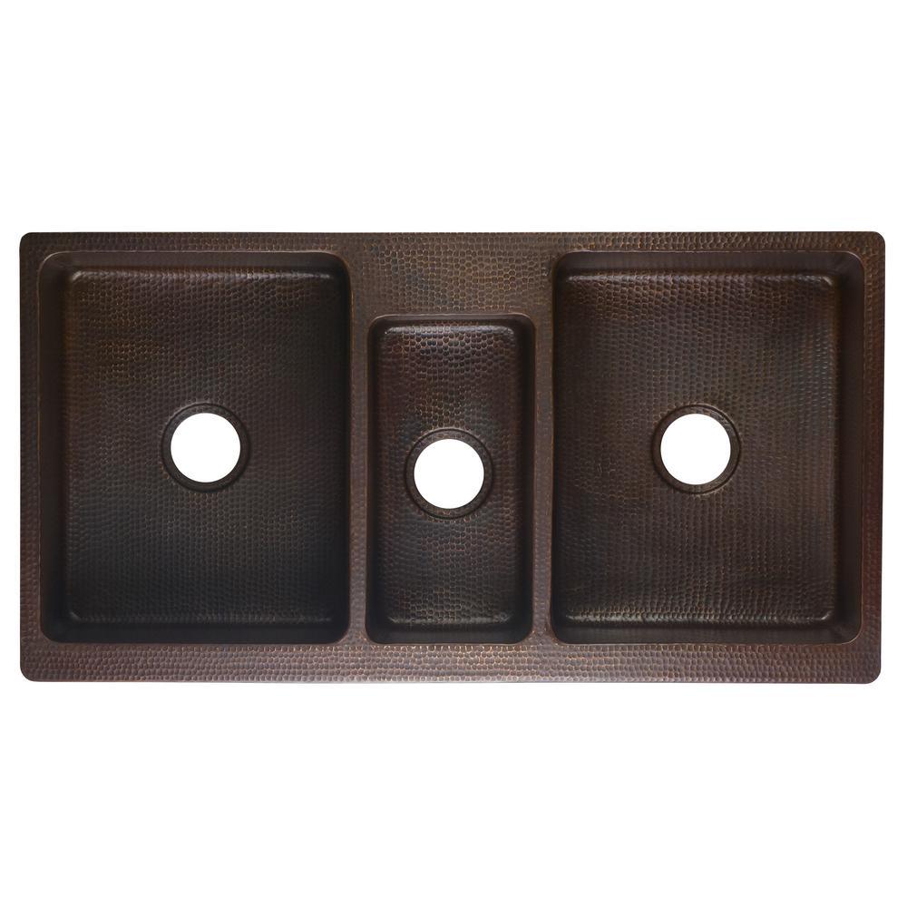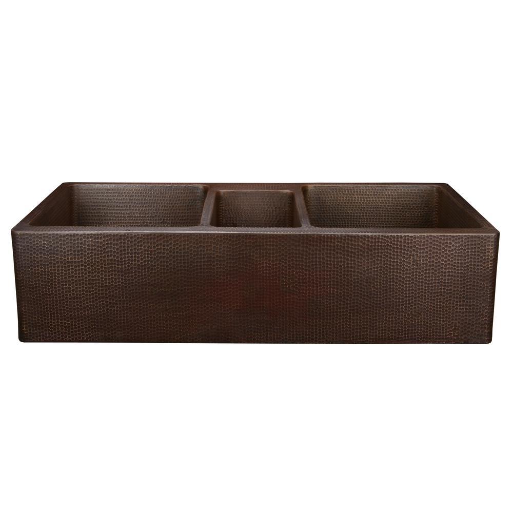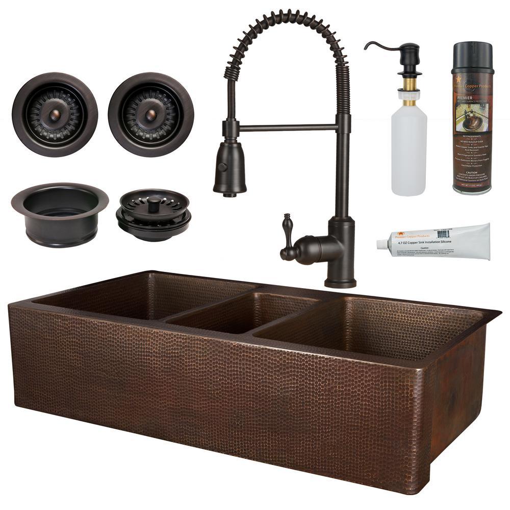 All-in-One Copper 42 in. Triple Bowl Kitchen Farmhouse Apron Front Sink with Spring Faucet in Oil Rubbed Bronze