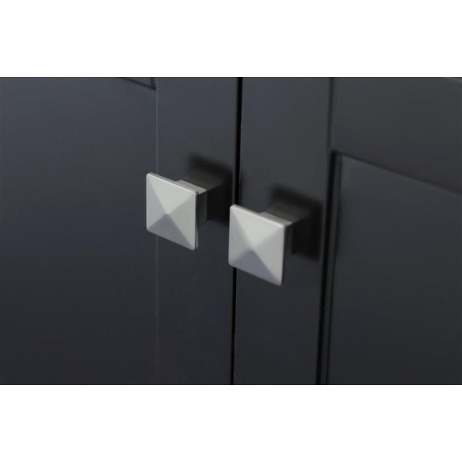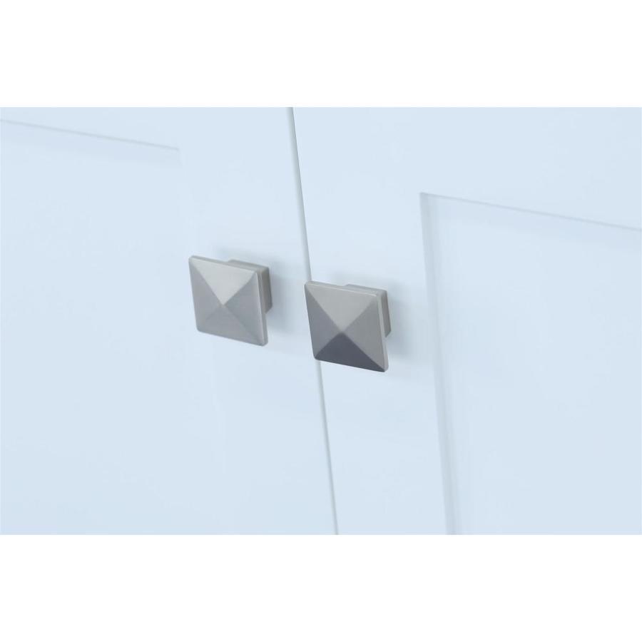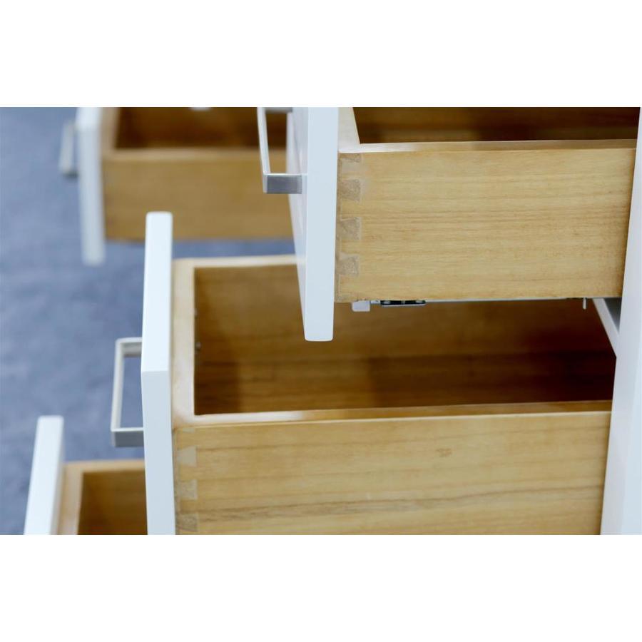 48-in W x 21.5-in D x 33.5-in H Hardwood plywood construction for lasting beauty and durability White painted finish Two soft-closing doors with adjustable hinges so you'll never have to worry about hearing a door slam Dovetail construction drawer boxes for additional strength and durability Nine full extension, self-closing drawers to meet all your storage needs Satin nickel finish hardware included Open back for easier installation Included: fully assembled base cabinet