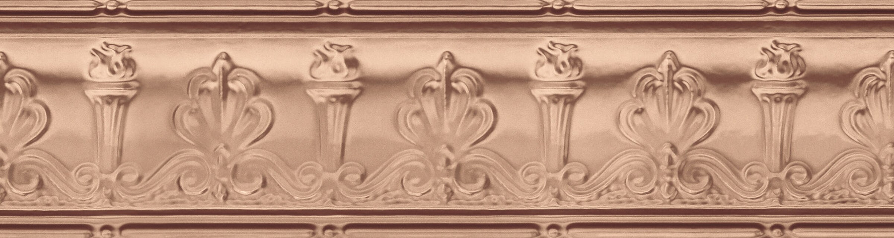 Finish your Metallaire ceiling with this real-metal Torch Cornice in copper. The 48-inch aluminum crown trim offers a vintage motif, installs directly with cone head nails, and is coated for rust resistance with a Class A fire rating.