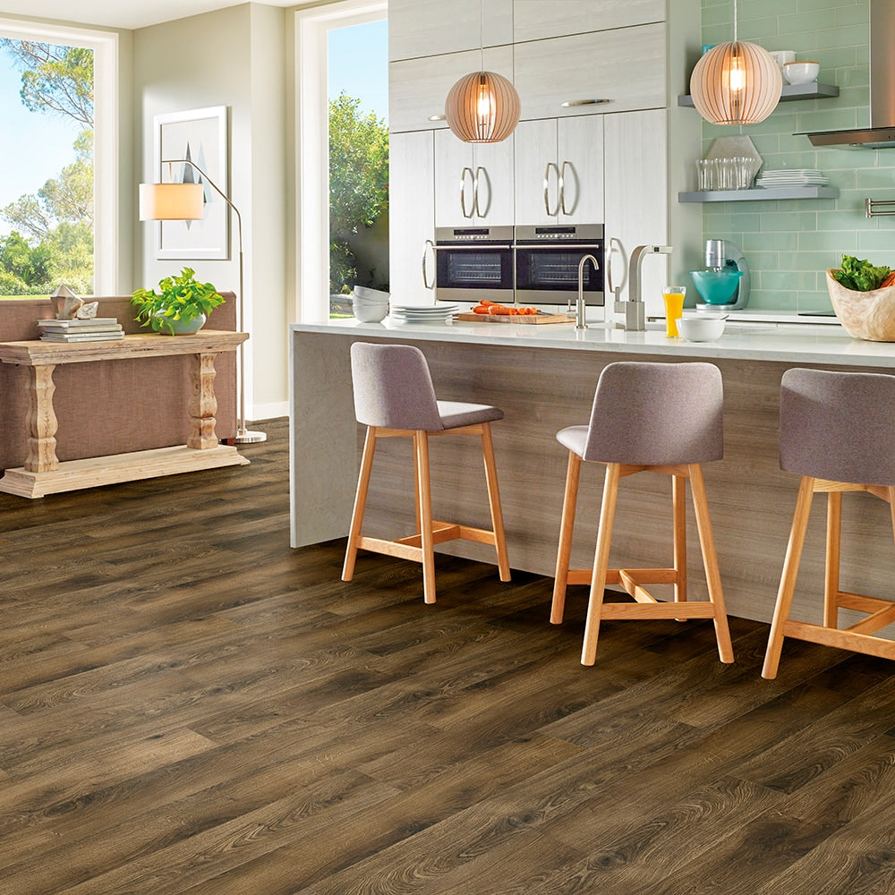 A durable, waterproof rigid core luxury vinyl plank with authentic oak wood visuals in a neutral Light Mocha tone. Click‑lock installation and attached pad make DIY projects faster while the 20‑mil urethane wear layer resists scratches and dents for busy homes.